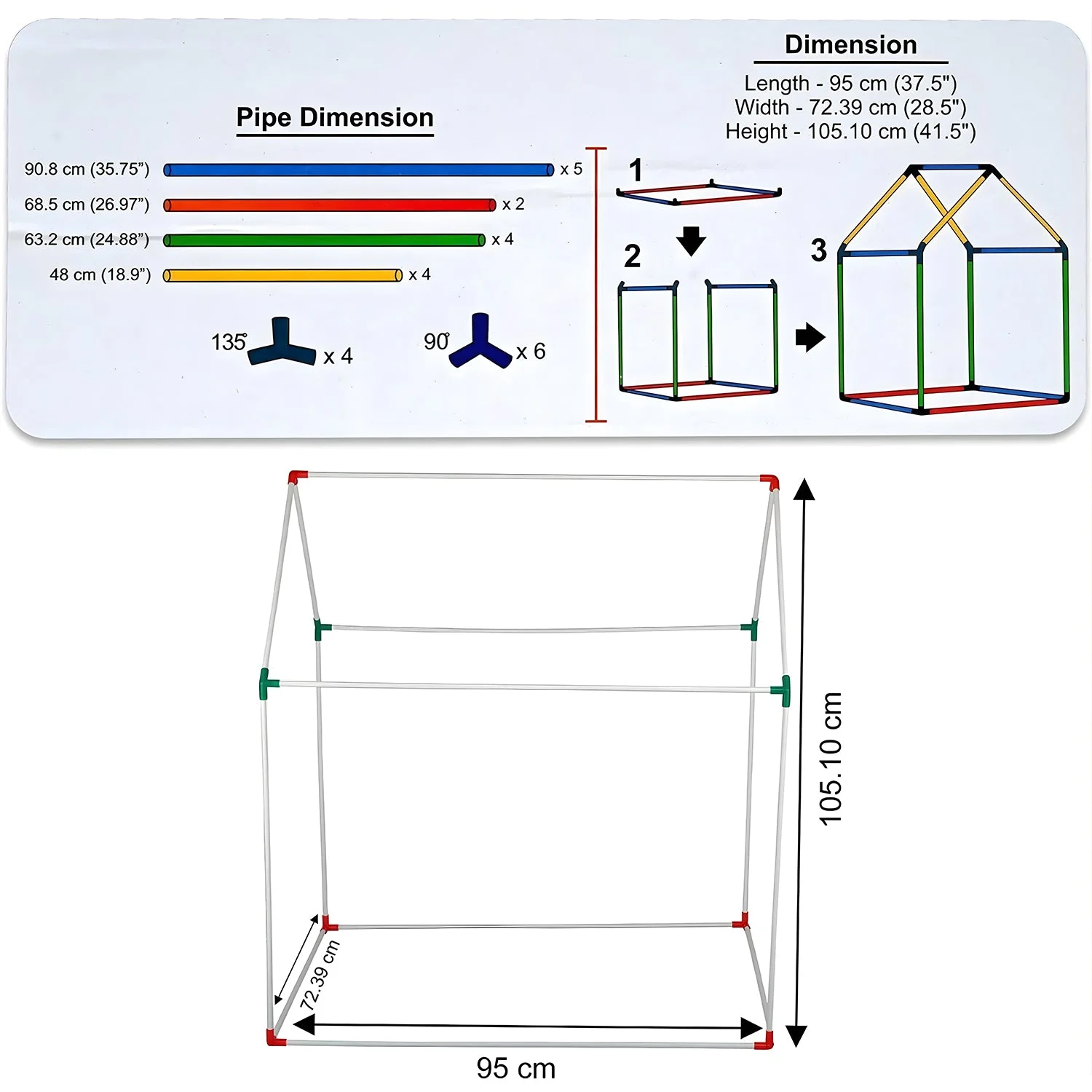 The spacious interior allows kids to sit, play with toys, read books, or create their own adventure zone comfortably. Made with durable fabric and a stable frame system, this playhouse is perfect for bedrooms, playrooms, gardens, or terrace areas. It encourages creativity, social interaction, and independent play, making it a great gift option for birthdays and special occasions.