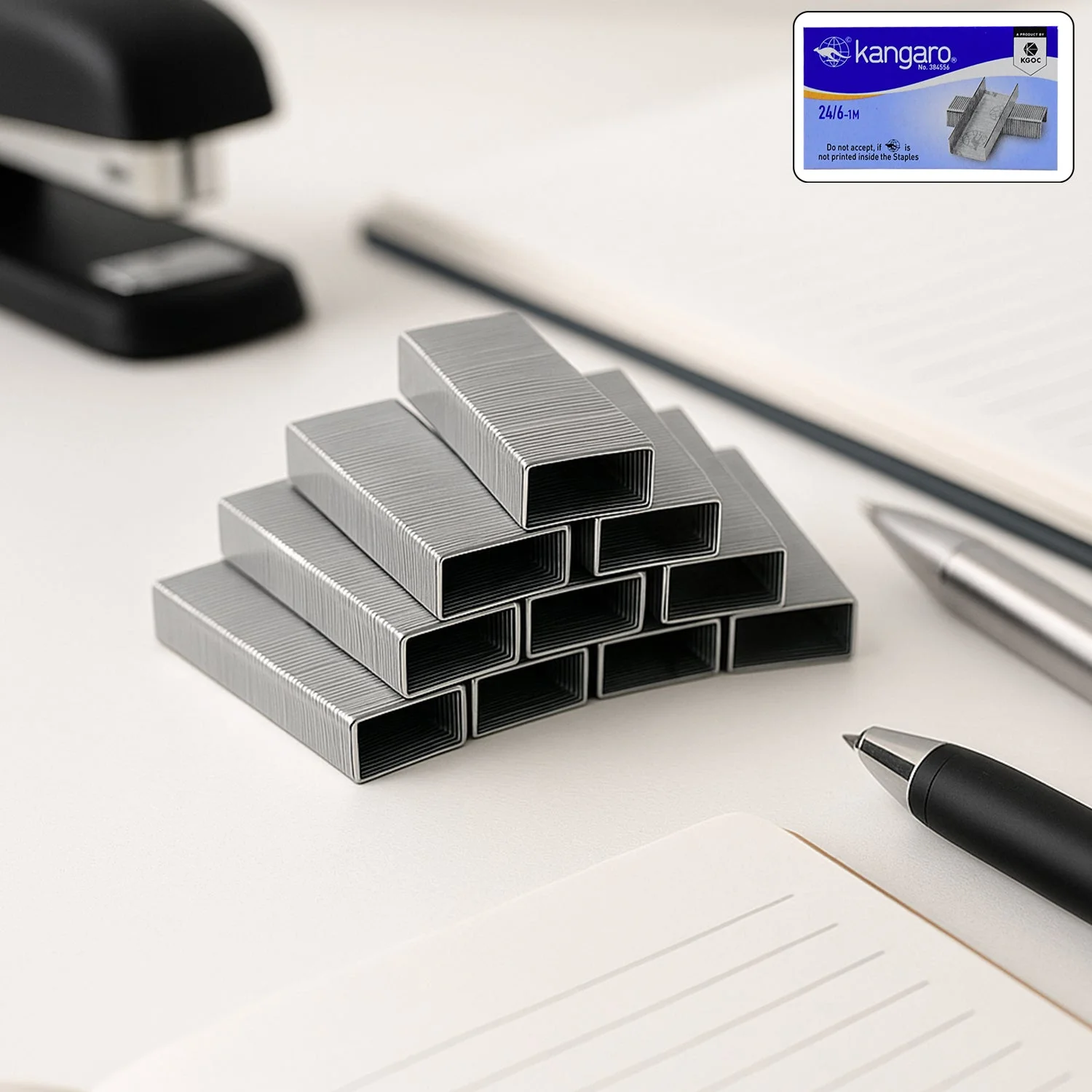 stapler pins , office pins , stapling pins , stationery pins , paper binding pins , refill pins for stapler , stapler accessories , metal stapler pins , study essentials , 24/6 stapler pins, Kangaro stapler refill , durable stapler pins , metal binding staples , standard size stapler pins