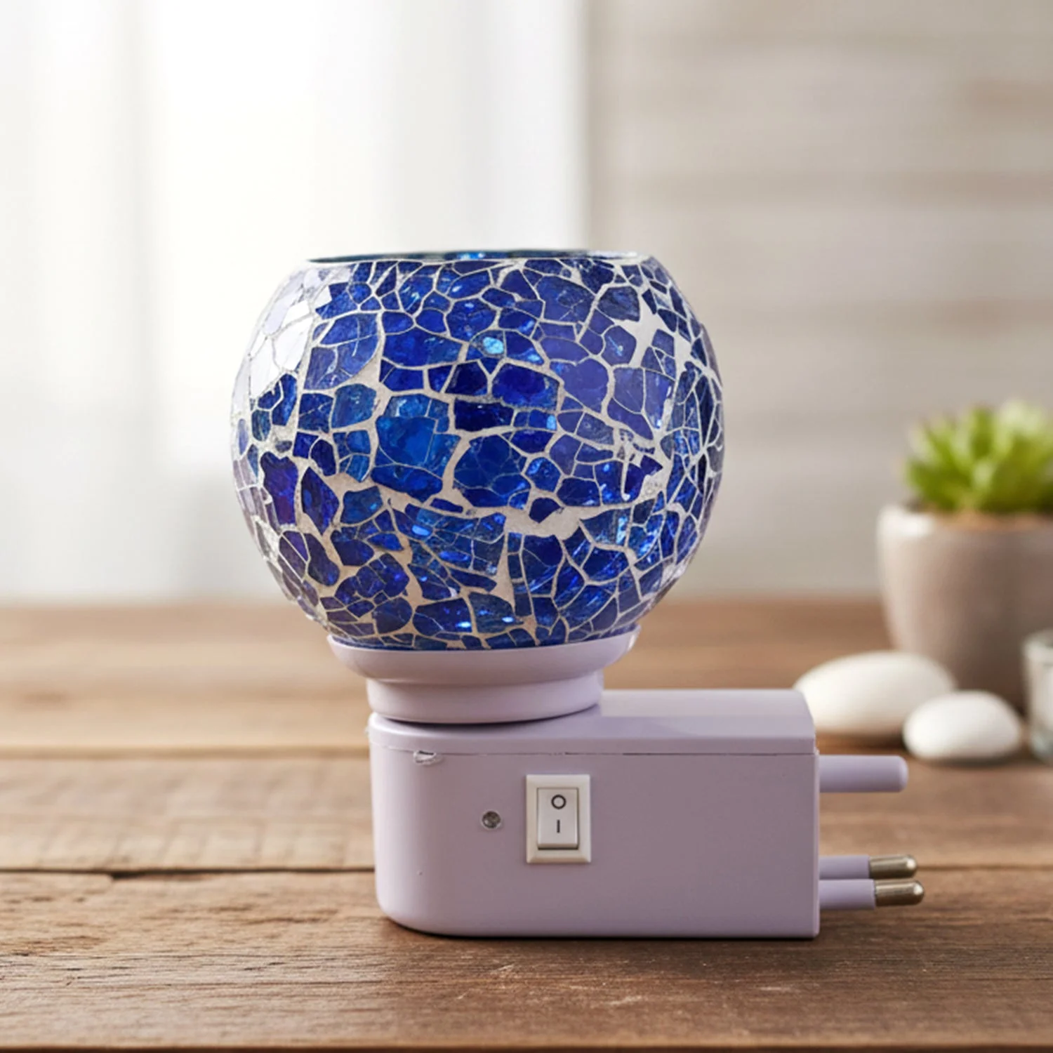 Add a beautiful premium glow to your space with this Mosaic Glass Electric Night Lamp. Designed with a stunning crackle mosaic glass shade, this decorative plug-in lamp creates a soft and calming light that instantly enhances the ambience of any room. It is ideal for bedrooms, kids rooms, hallways, living areas, mandir corners, and festive decoration setups. The plug-in base makes it easy to use—just connect it to a socket and enjoy warm lighting without any extra wiring. Its compact design makes it perfect for daily night use as well as for special occasions like Diwali, festivals, parties, and home décor styling. This night lamp is a great option for gifting and for creating cozy lighting in any corner of the house.