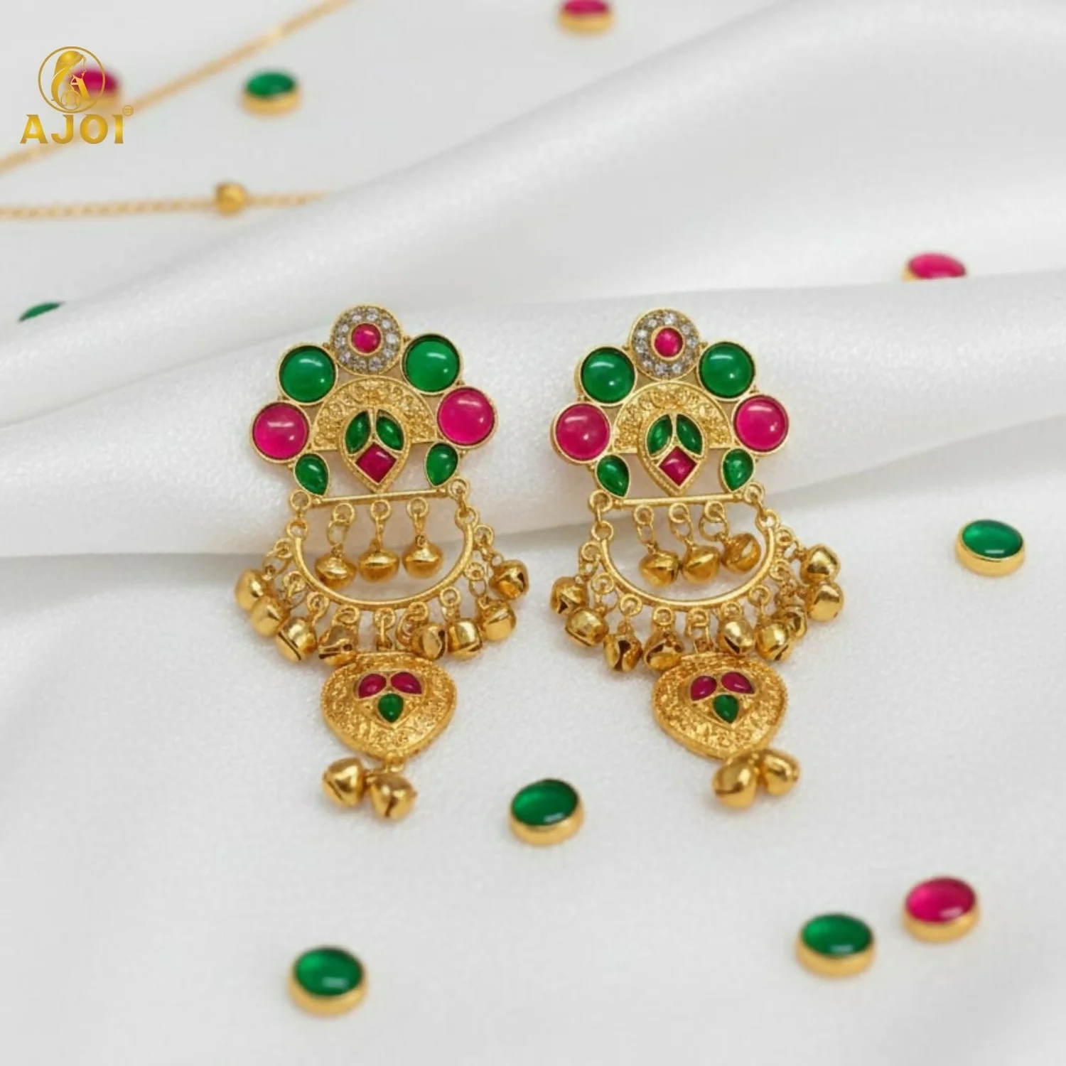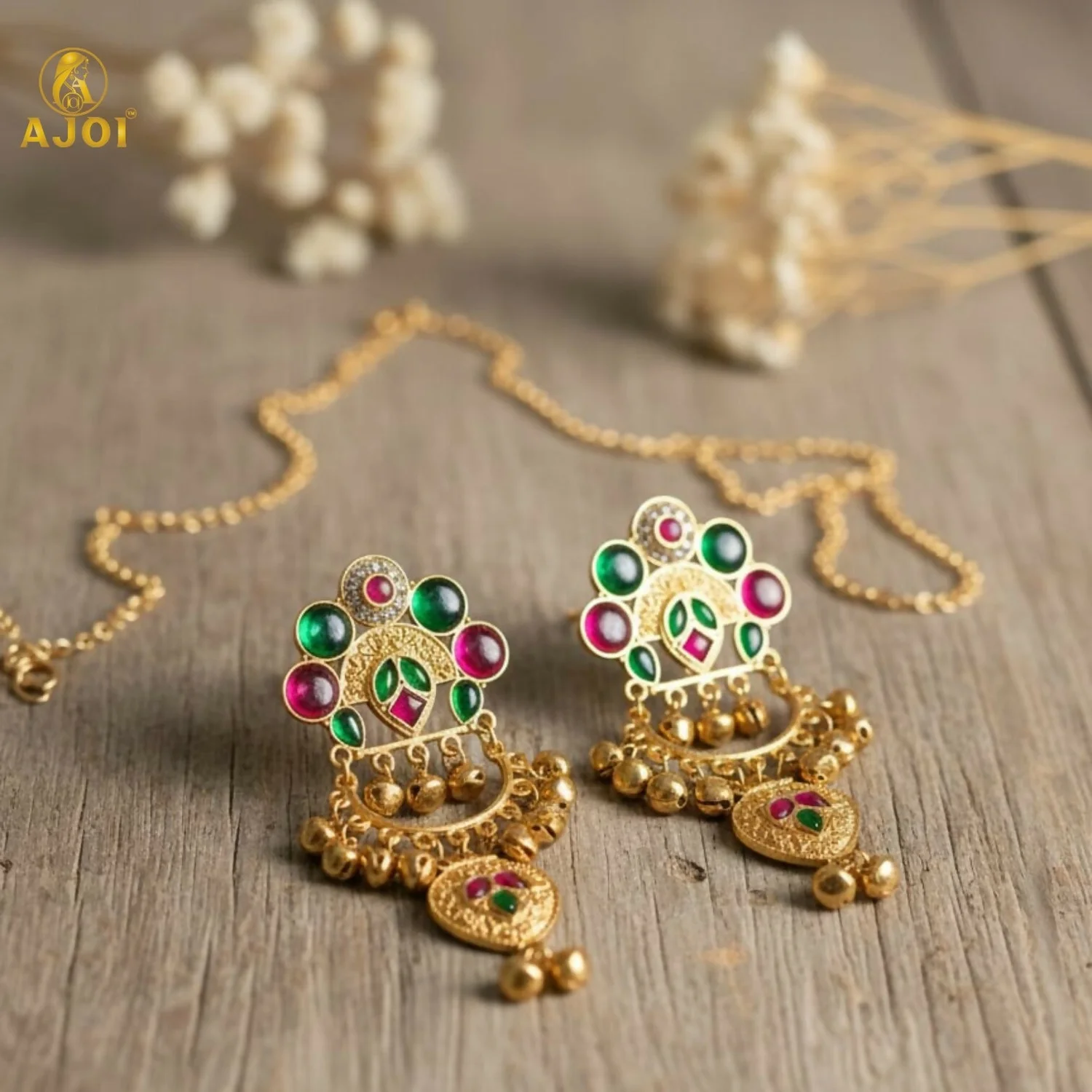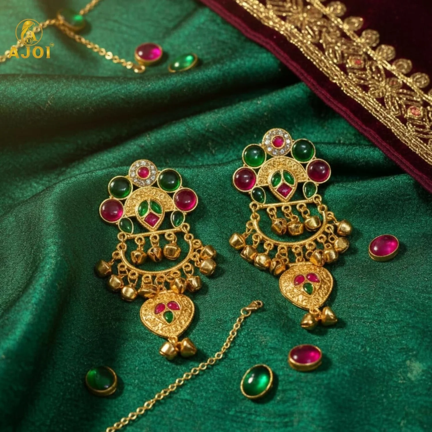 Be the first to review Kasmiri Gold-Plated Chandbali Earrings with Green & Pink Stones!