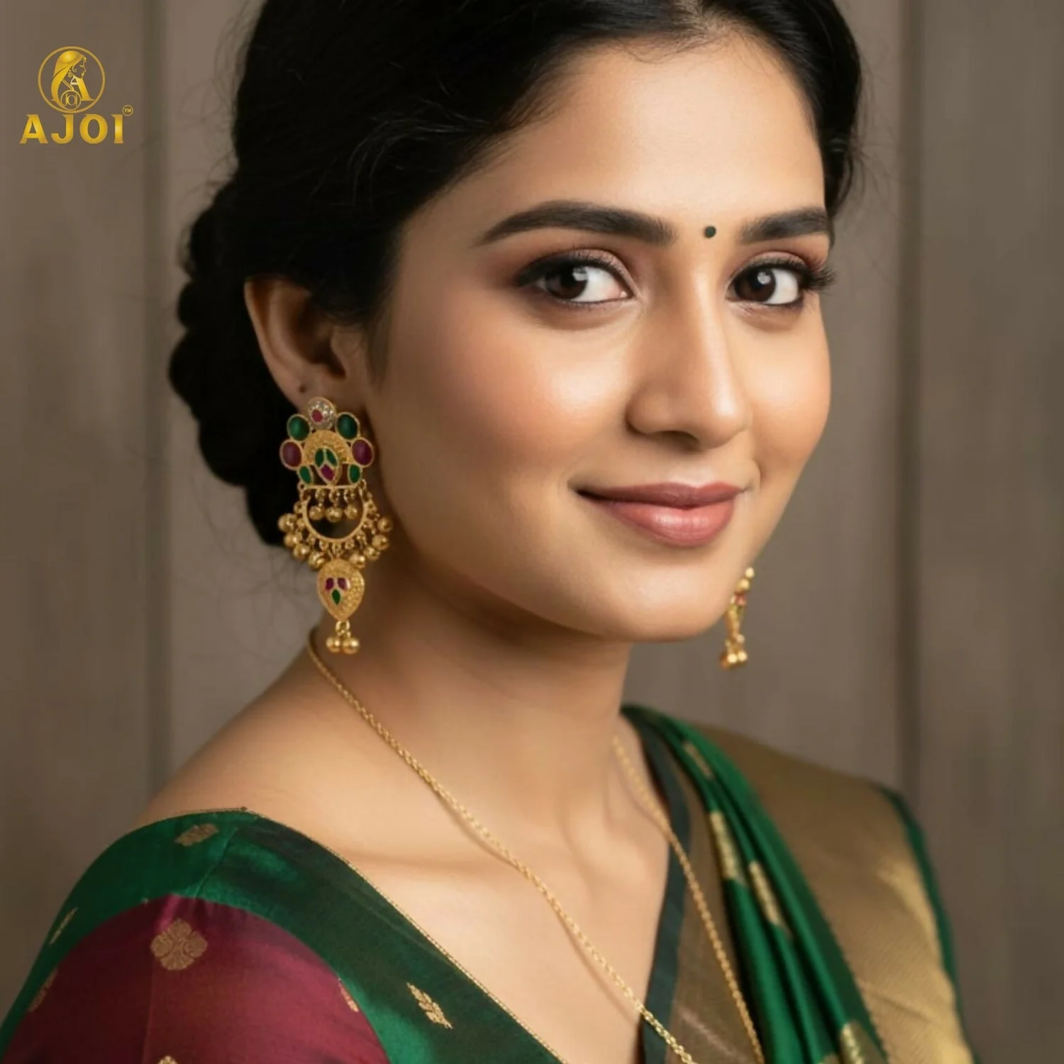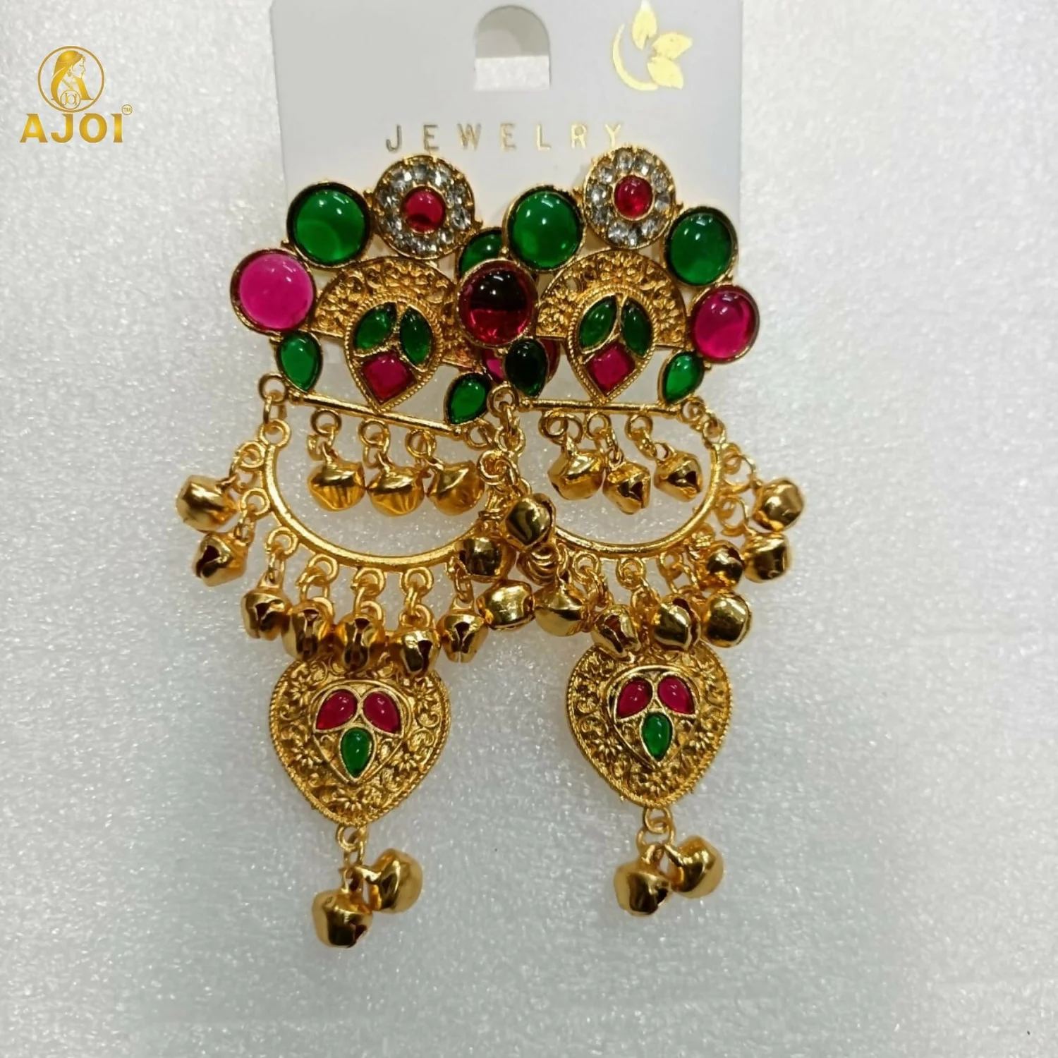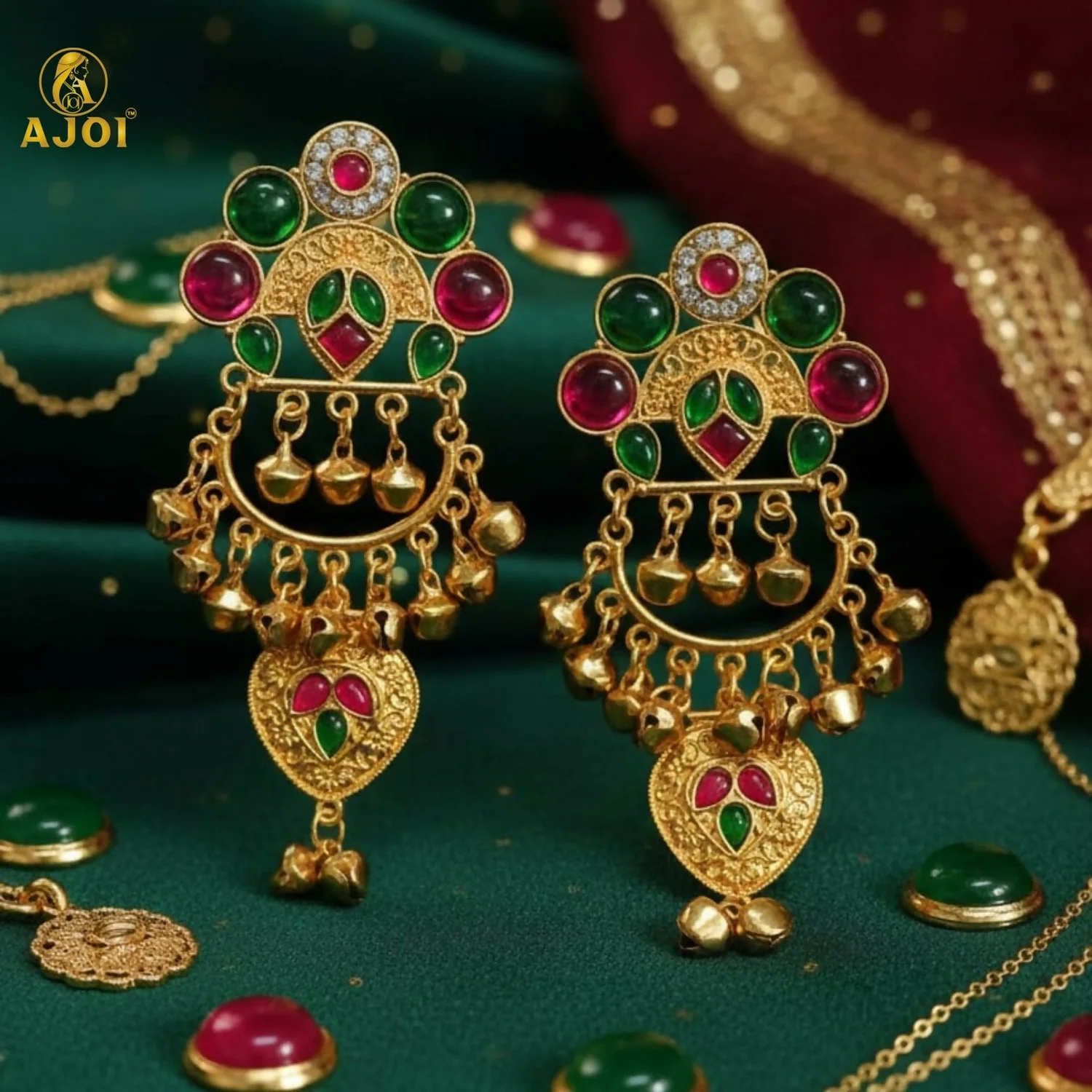 Be the first to review Kasmiri Gold-Plated Chandbali Earrings with Green & Pink Stones!