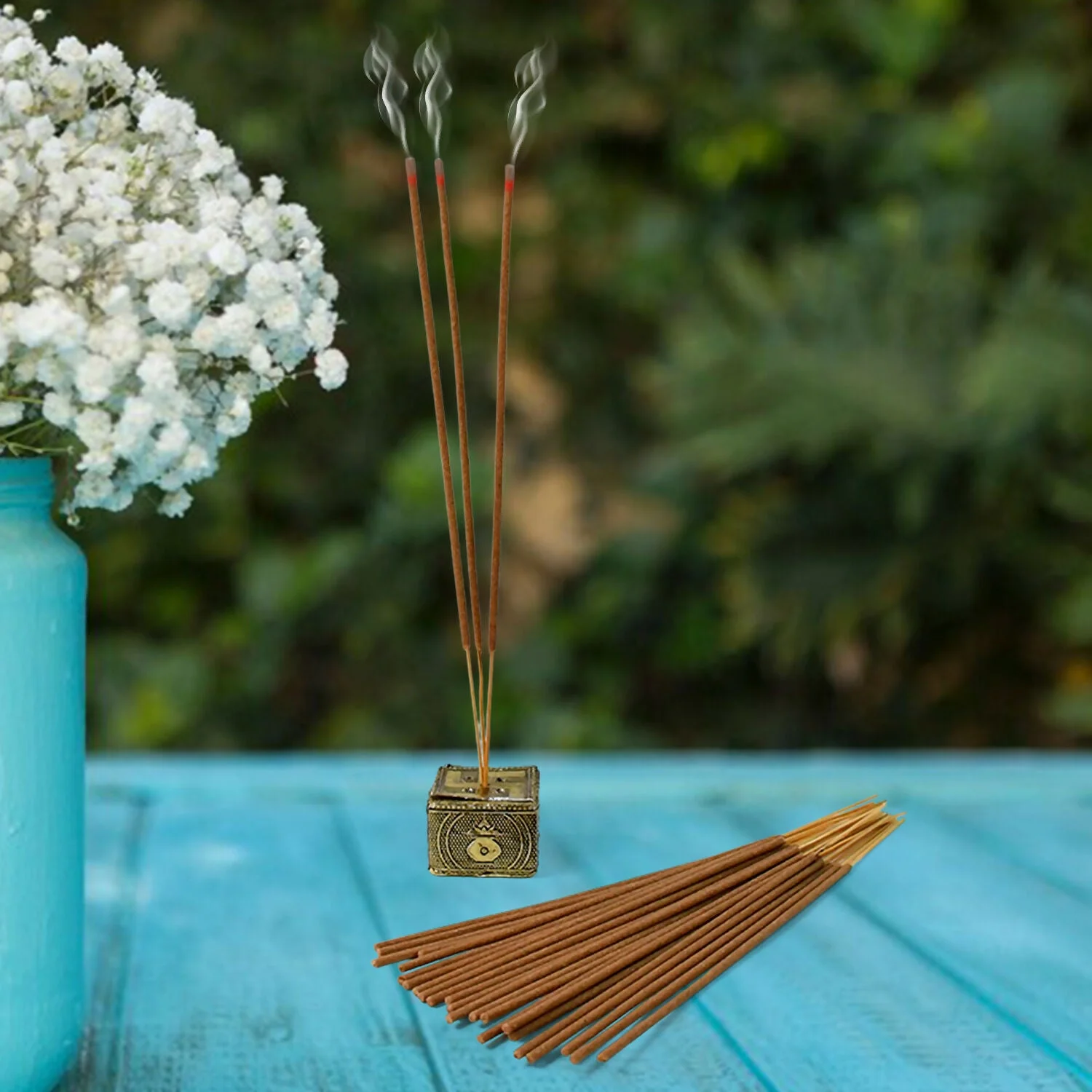 Made from natural ingredients like wood powders, aromatic herbs, resins, and essential oils, it emits a pleasant fragrance when burned.