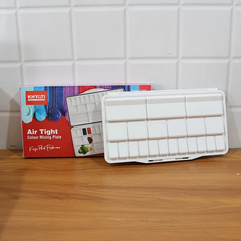 The Khyati Airtight Colour Mixing Plate is a professional-grade palette designed to keep your paints fresh and vibrant for longer periods. Featuring a silicone airtight seal on the lid, this palette prevents paint from drying out, making it perfect for watercolours, acrylics, and gouache. Its spacious dual-layer folding design includes multiple deep and shallow wells for efficient colour separation and blending. Compact, durable, and easy to clean, this palette is ideal for both studio work and outdoor painting sessions, giving artists complete control and convenience wherever inspiration strikes.