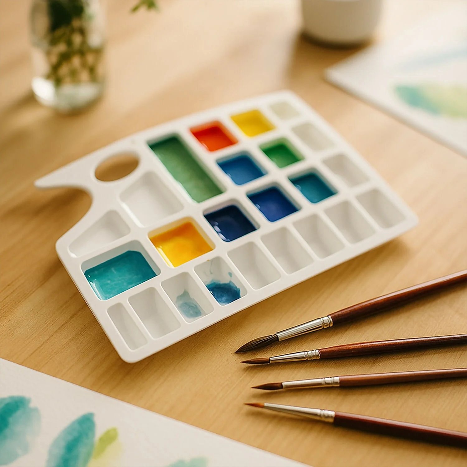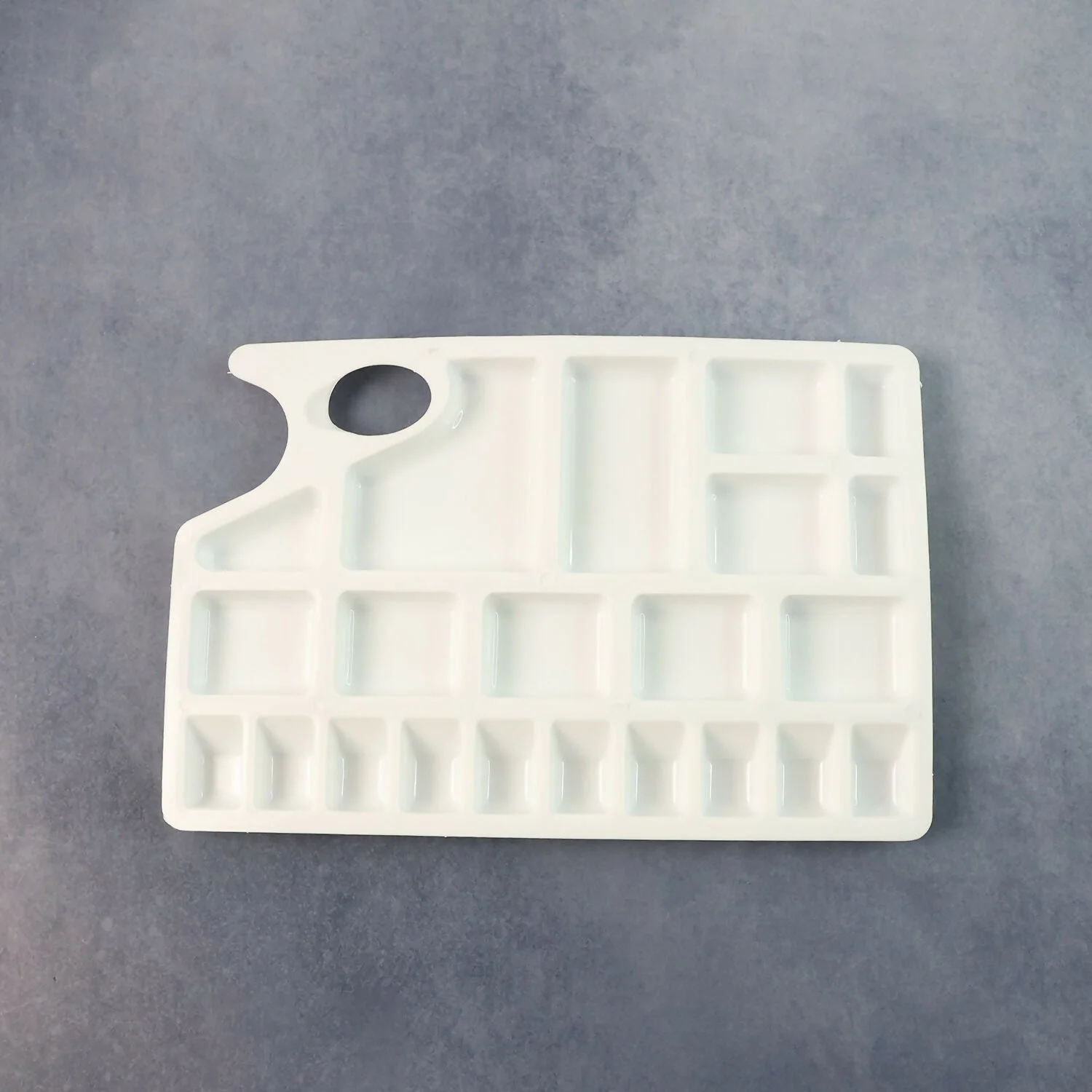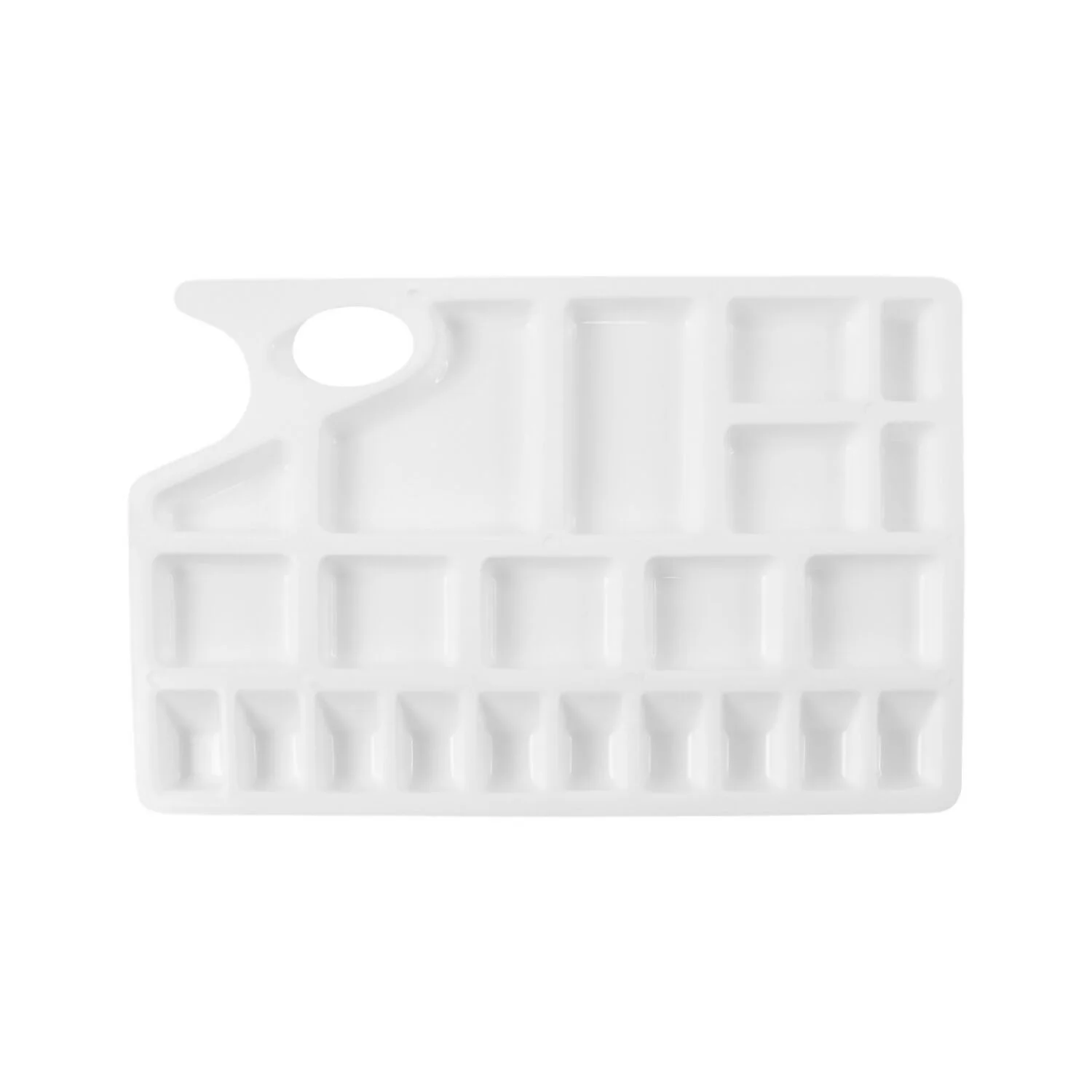 The Khyati Colour Mixing Plate – Rectangle Medium is a versatile and functional palette designed for precision and convenience in every painting session. Featuring multiple rectangular wells, it allows artists to separate, mix, and experiment with colours easily. The ergonomic thumb hole ensures a comfortable grip while painting, making it ideal for both studio and outdoor use. Crafted from high-quality, durable plastic, it’s lightweight, easy to clean, and perfect for use with watercolours, acrylics, and poster paints. This palette is a must-have for students, professionals, and hobby artists alike., Partition Plate