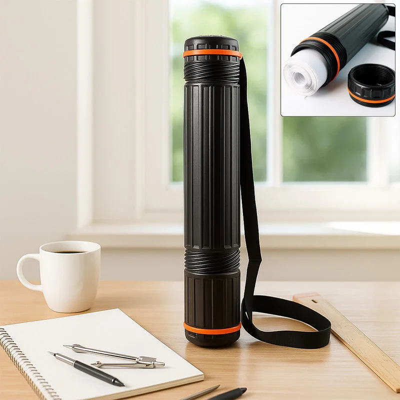 The Khyati Paper Container Supreme (Model D282) is a durable, extendable storage and transport tube designed to safely carry large sheets like architectural drawings, maps, art posters, and design charts. Made from strong, rigid material, it features an adjustable length to fit various paper sizes and a secure screw-cap closure for maximum protection. The ergonomic shoulder strap allows for easy portability, making it ideal for architects, designers, artists, and students. Its sleek ribbed design adds both strength and a professional look, ensuring your work stays organized and damage-free wherever you go.