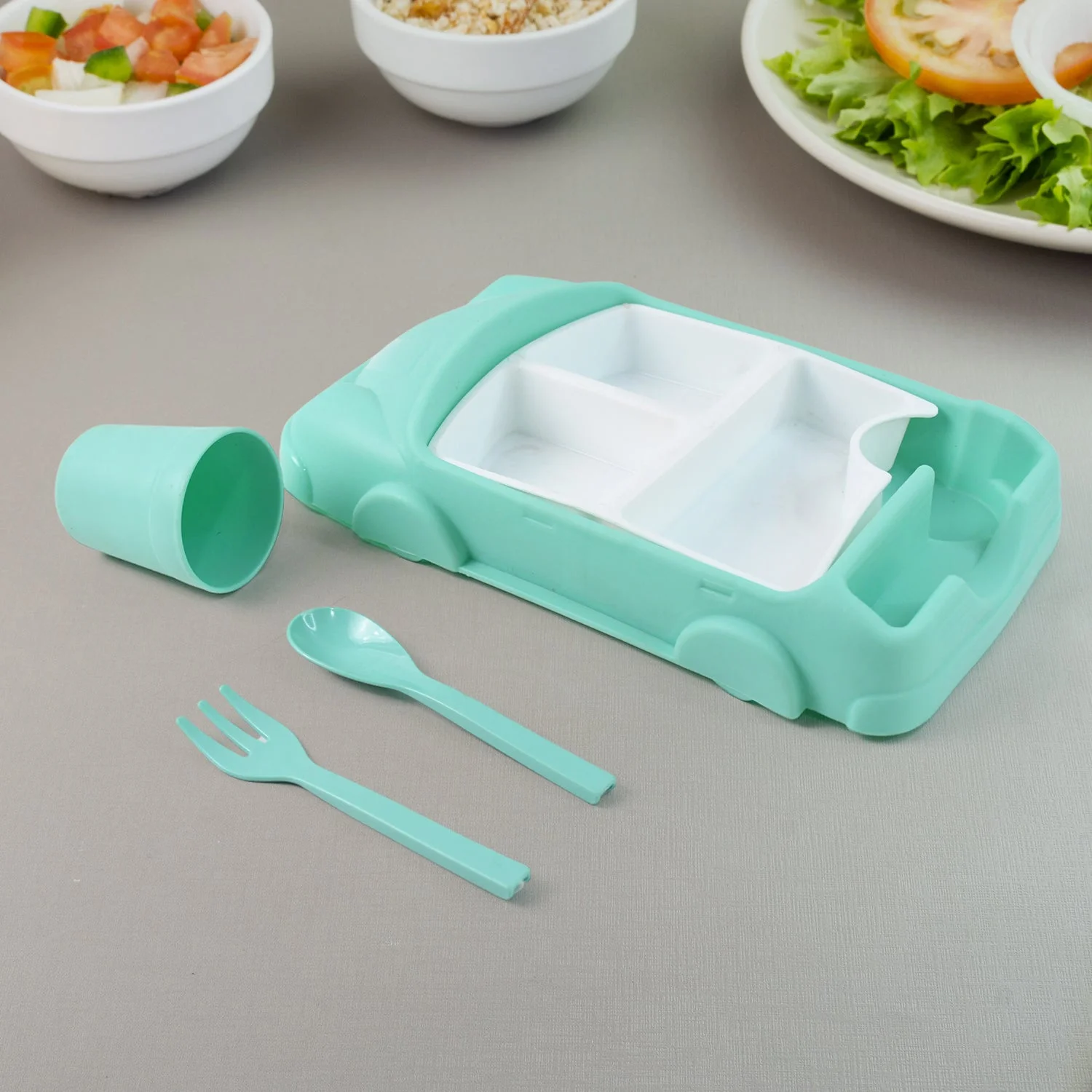 Kid's Car Shaped Plates Cup / Lunch Box Dinnerware Set Food Containers Infant Training Dishes Baby Feeding Sets Kids Tableware With Spoon & Fork (4 Pcs Set / 1000 ML Lunch Box)