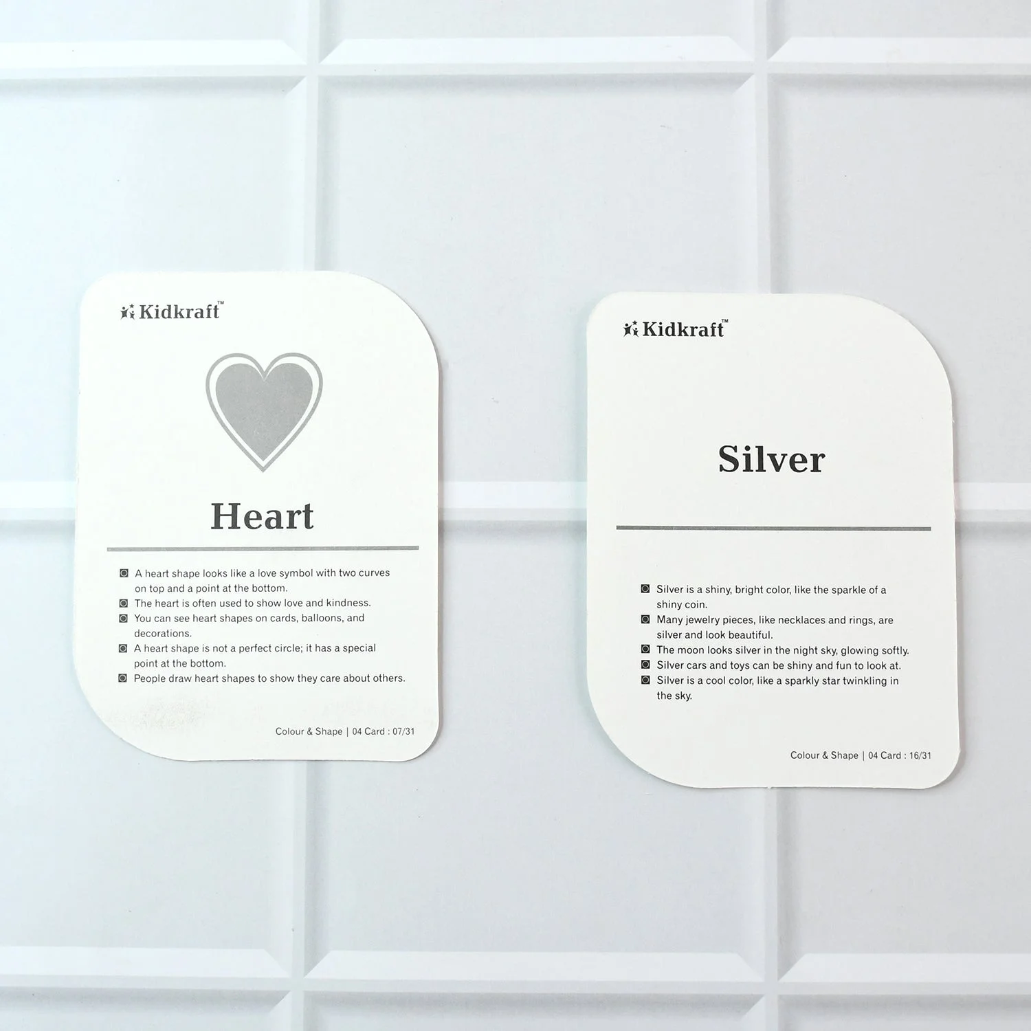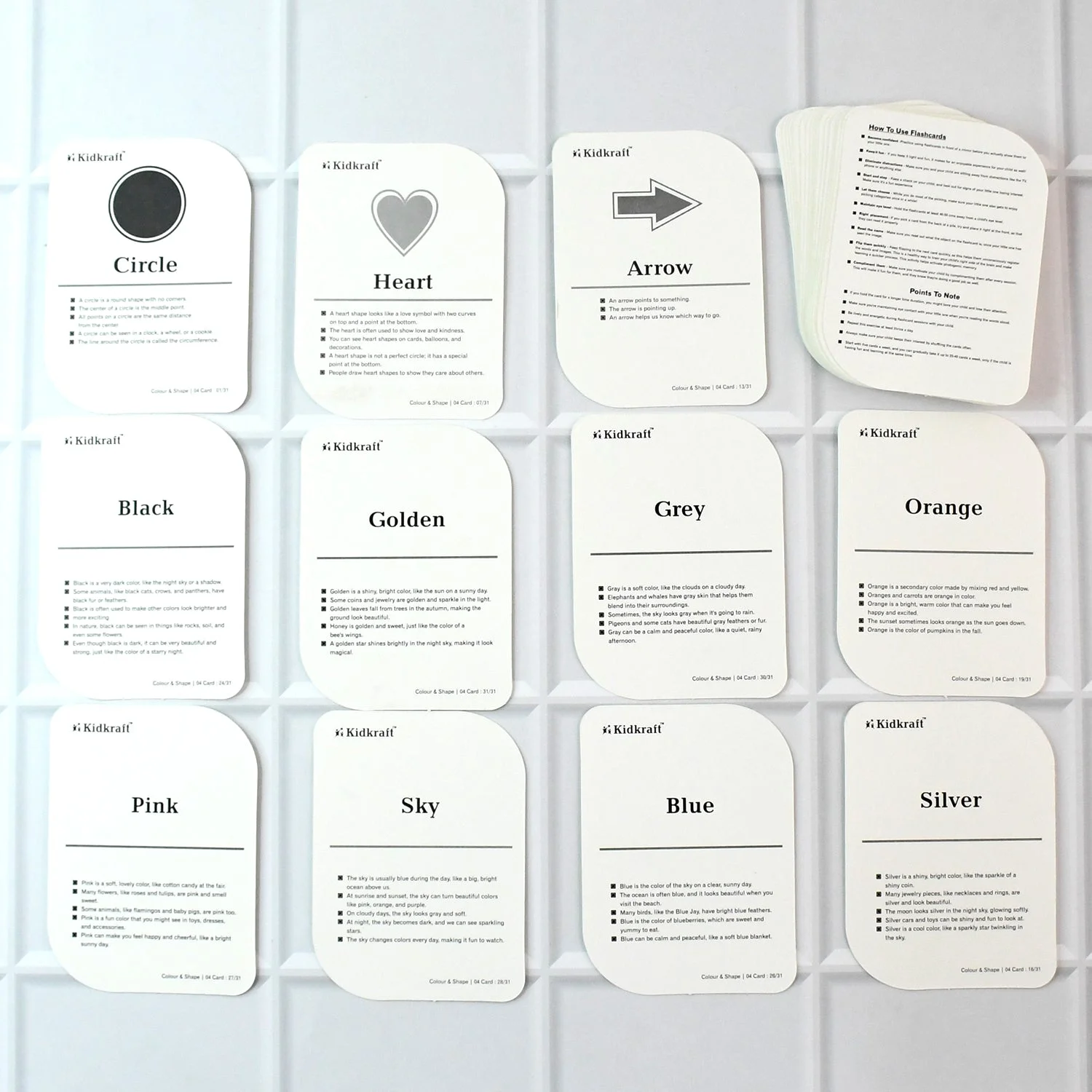 Set Includes: 32 flashcards (featuring basic colors & geometric shapes)