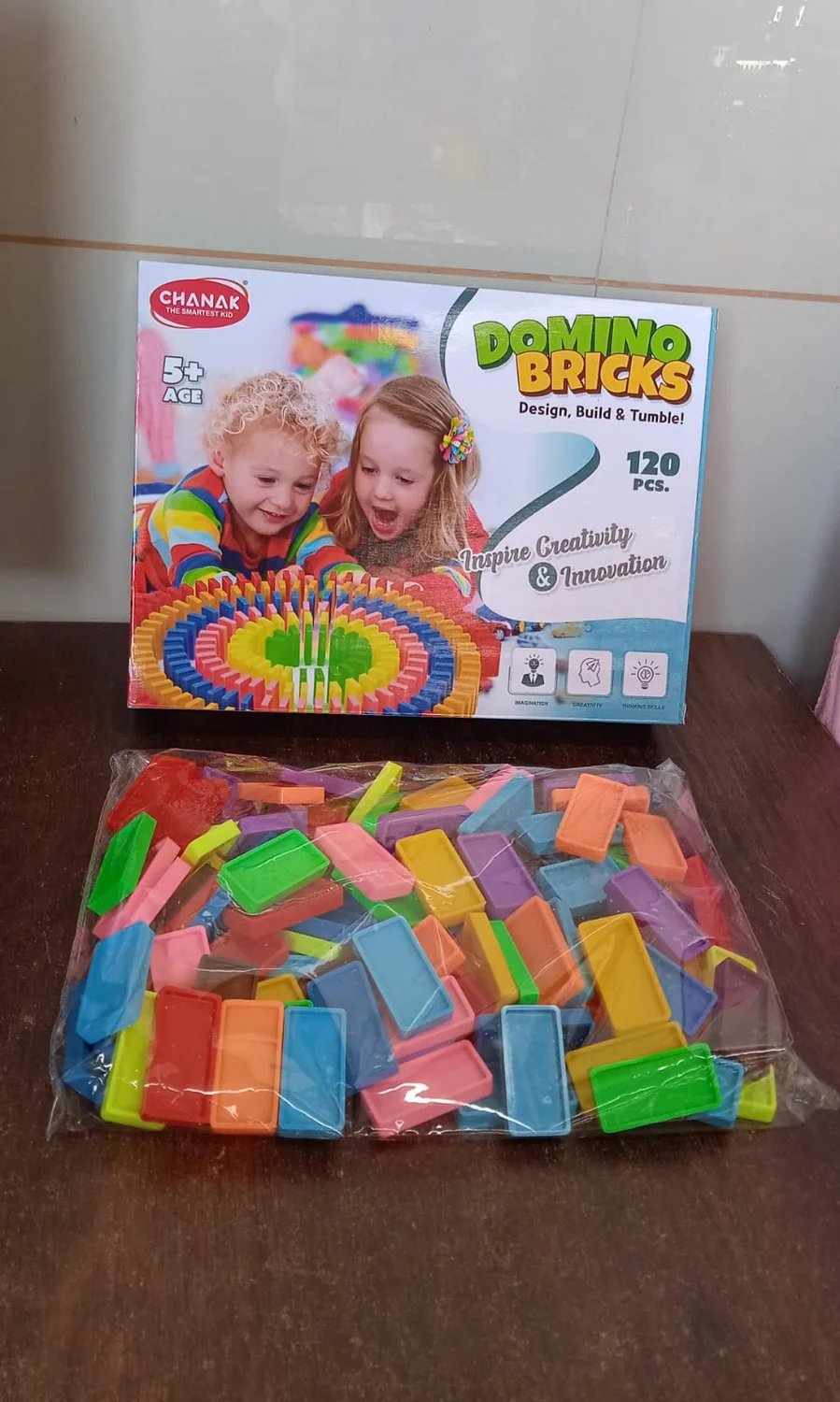 Kids 120 Domino Blocks Dominoes Set For Kids Bulk Colourful Domino Building Blocks Domino Tile Bulk Building Racing Stacking Game Educational Toys (120 Pcs Set)