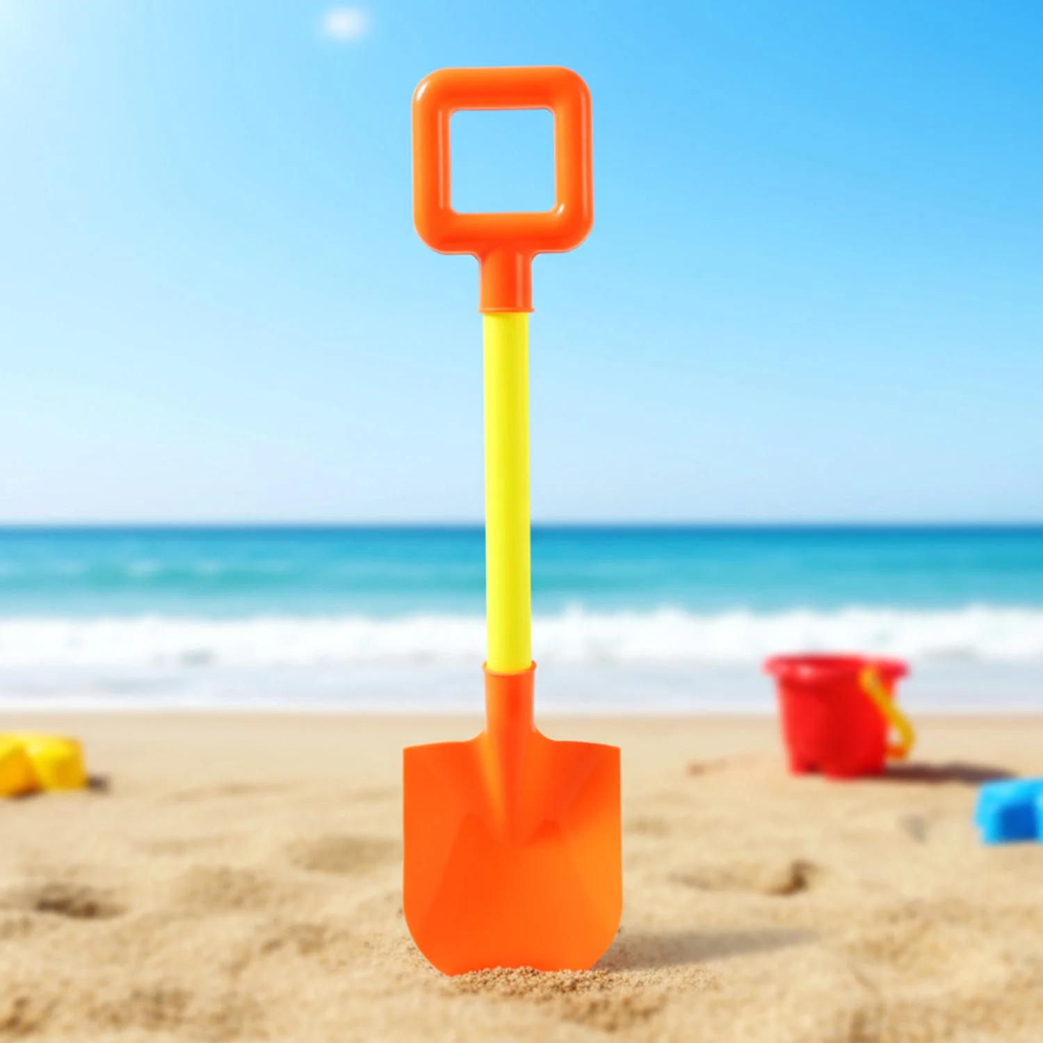 This kids beach sand shovel is designed to make outdoor playtime more enjoyable and engaging for young children. The broad scoop allows easy digging, scooping, and filling of sand, helping kids create sand structures with ease. Its long handle is comfortable for small hands and supports safe play without strain. Made for repeated outdoor use, this shovel encourages active play, creativity, and exploration during beach trips, sandbox play, and garden activities.
