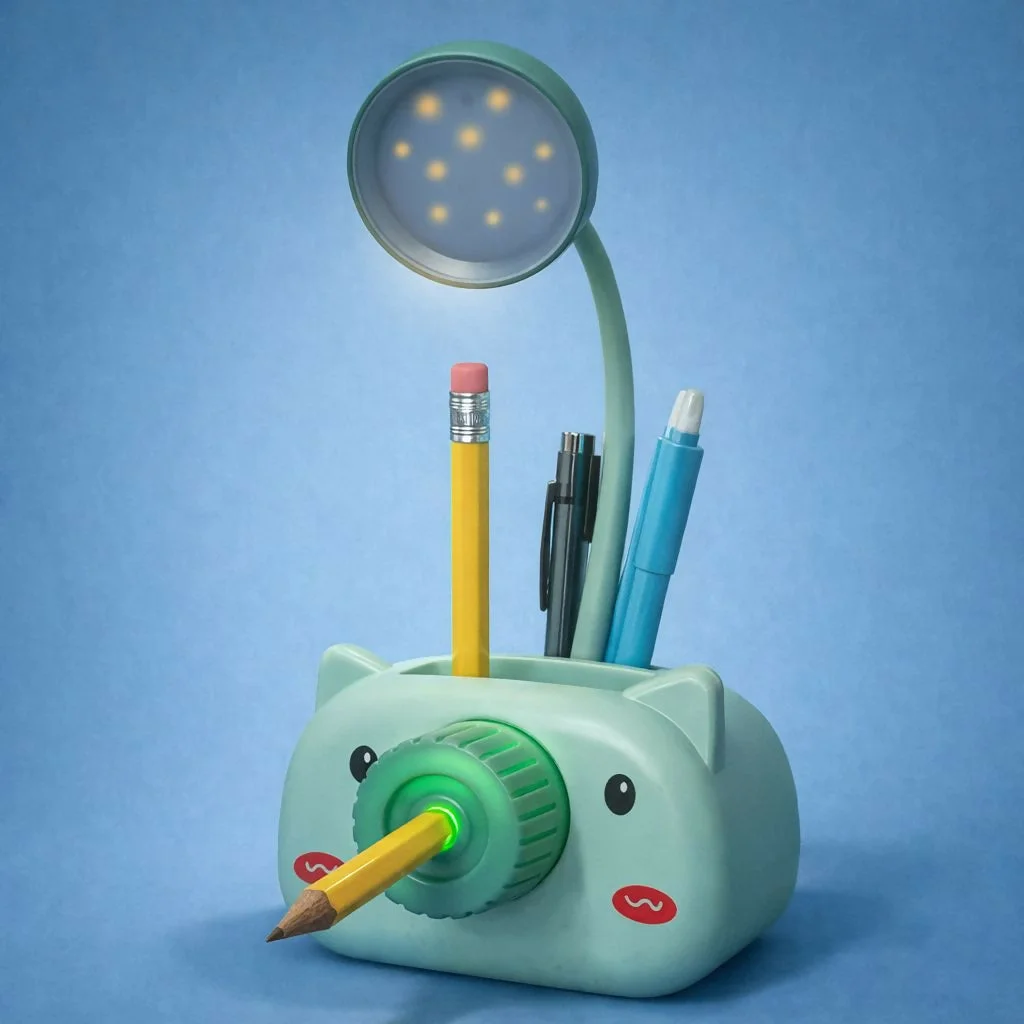 • Multifunction Desk Lamp – Combines LED study light, pencil sharpener, and pen holder.