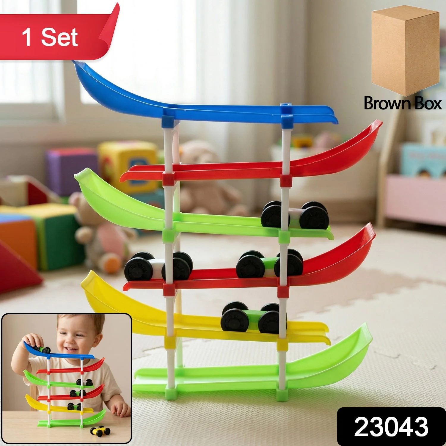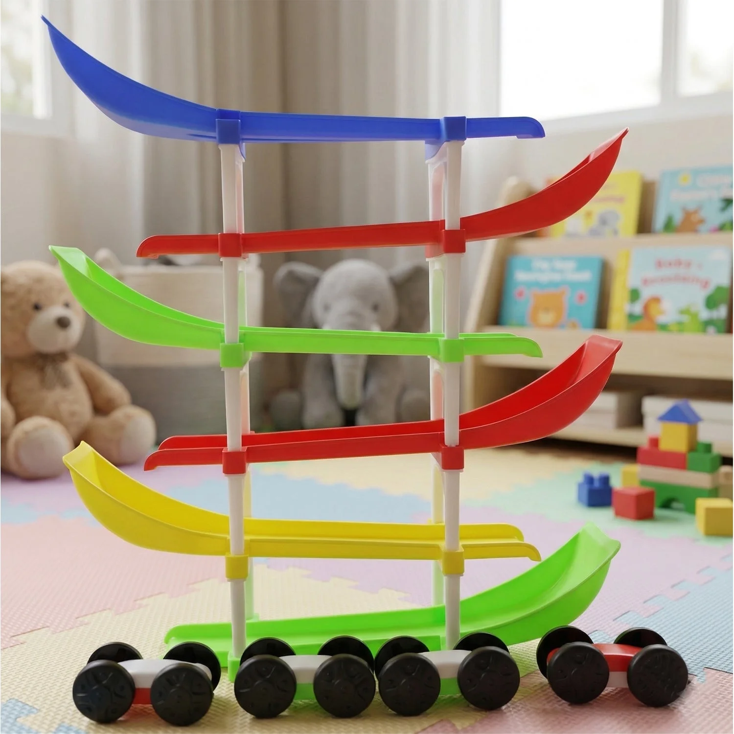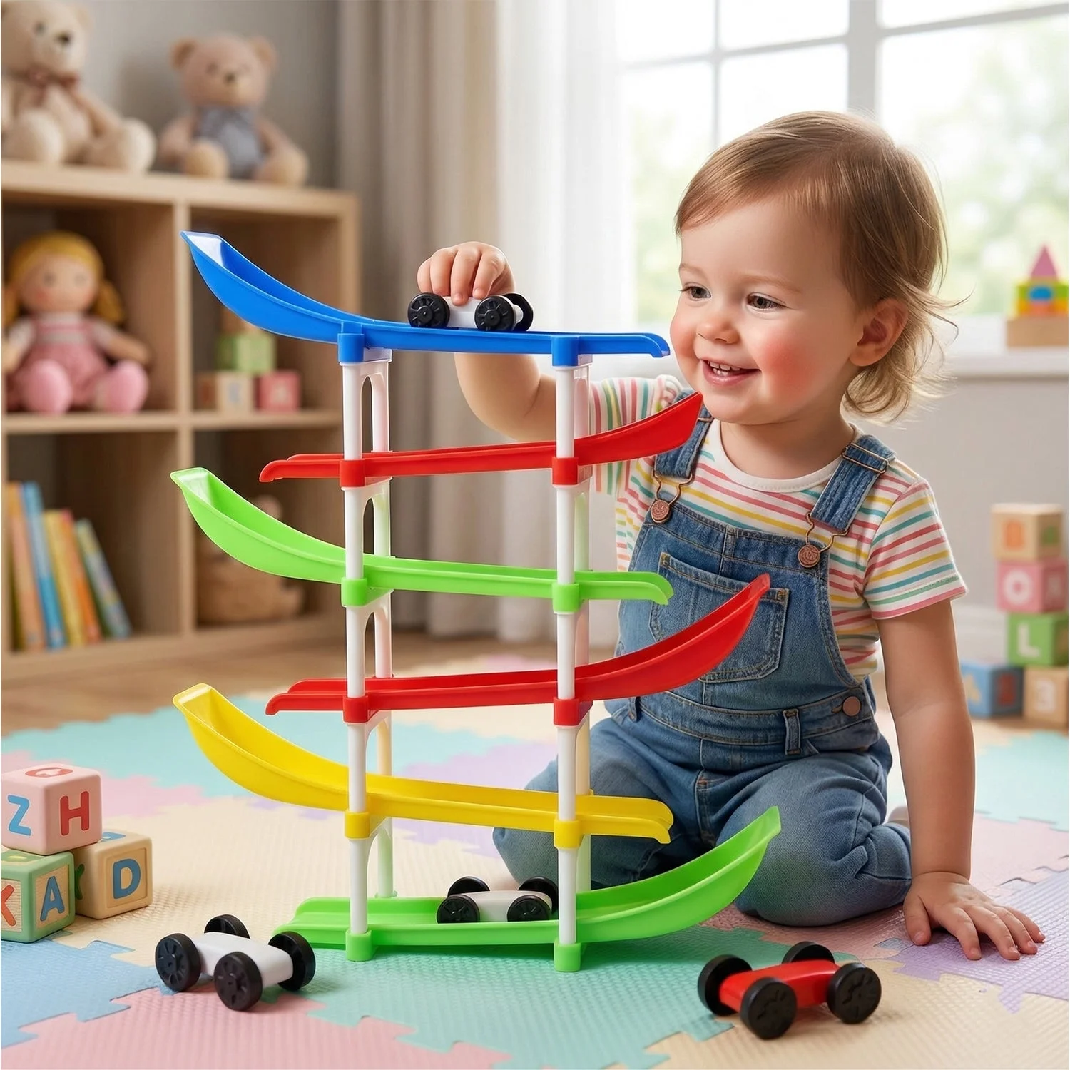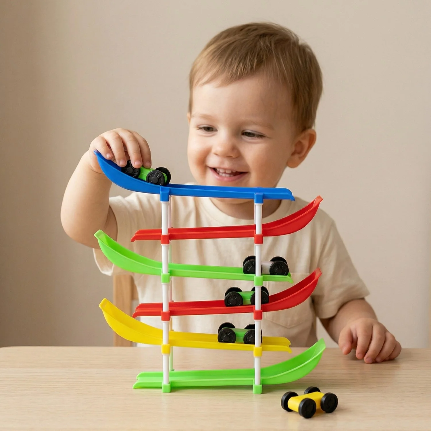 kids multi level car racing track toy set, colorful ramp race track toy with mini cars, gravity sliding tower car toy for kids, educational racing track toy indoor play, kids car ramp track game set, mini car drop race track toy, interactive toddler car racing tower toy, fun learning toy with sliding cars, preschool car track toy set colorful, durable kids racing ramp toy indoor, multi level car slide toy for children, early learning activity toy car track, gift toy racing track for kids, smooth sliding gravity car toy set
