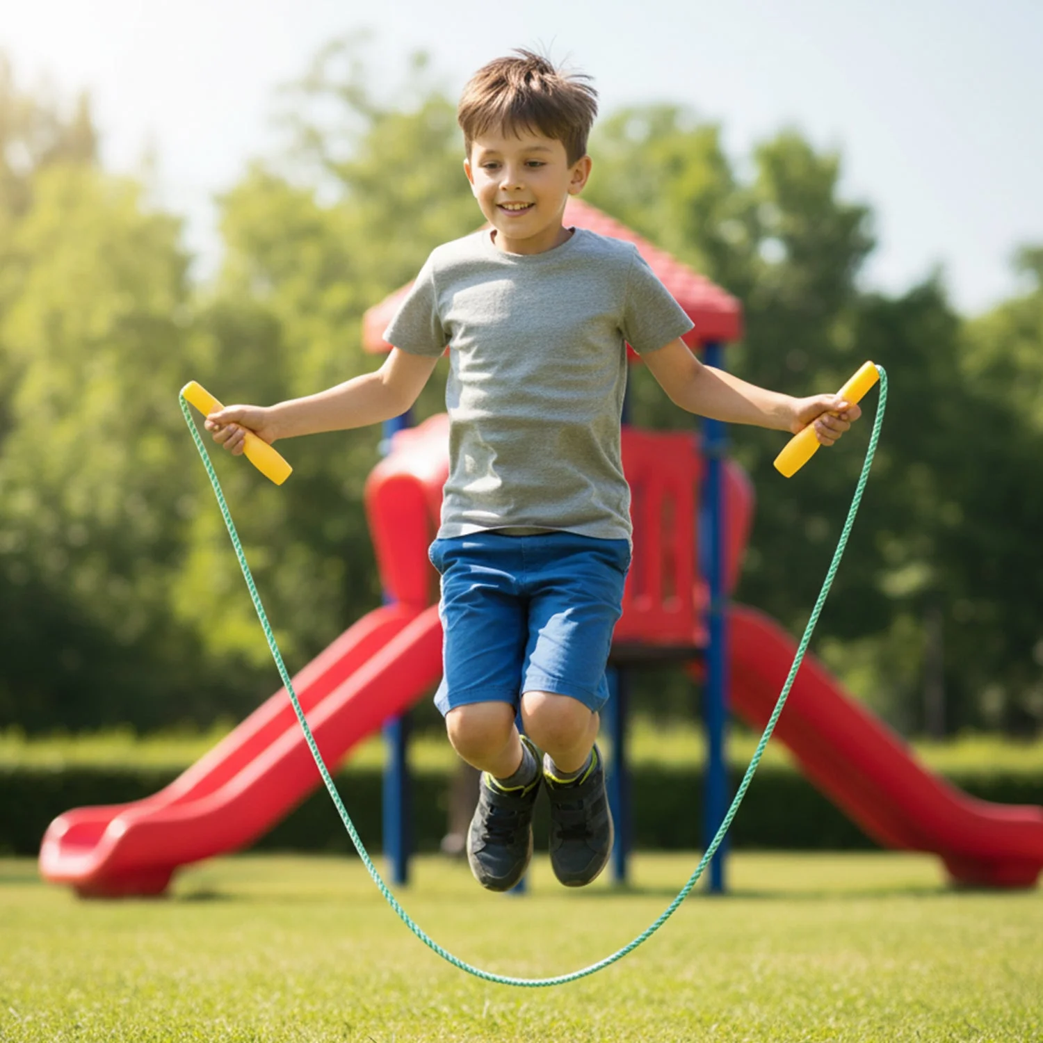 Kids Skipping Jump Rope for Boys & Girls with Comfortable Soft Grip Handles, Smooth & Fast Rotation Rope for Outdoor Play, Daily Exercise, Sports Training, Fitness, Coordination Practice, School Games & Fun Activity for Children (1 Set)