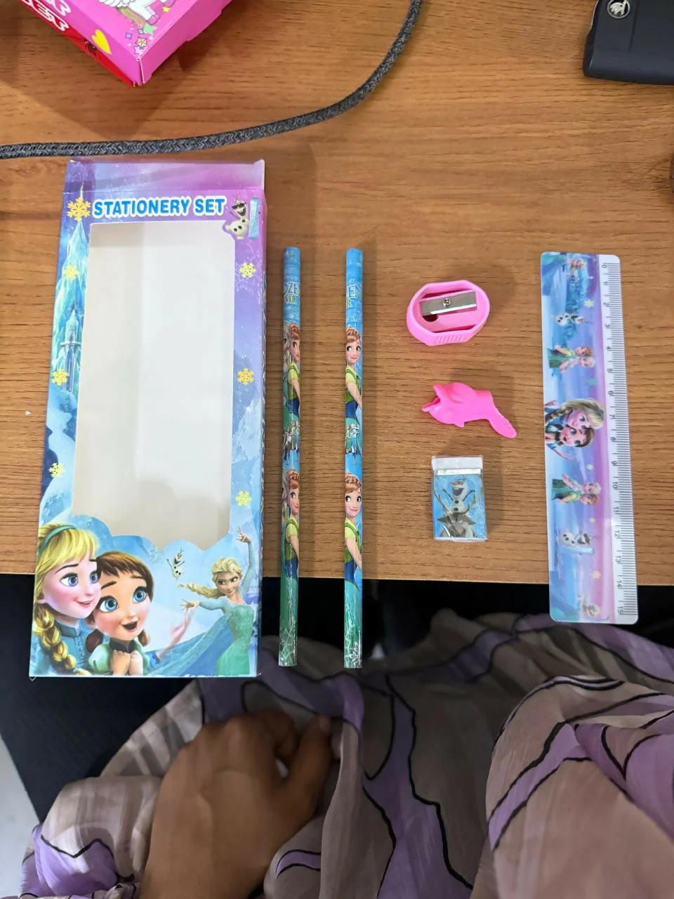 • Complete Stationery Set – Includes 2 pencils, 1 ruler, 1 eraser, 1 sharpener, and 1 finger grip.