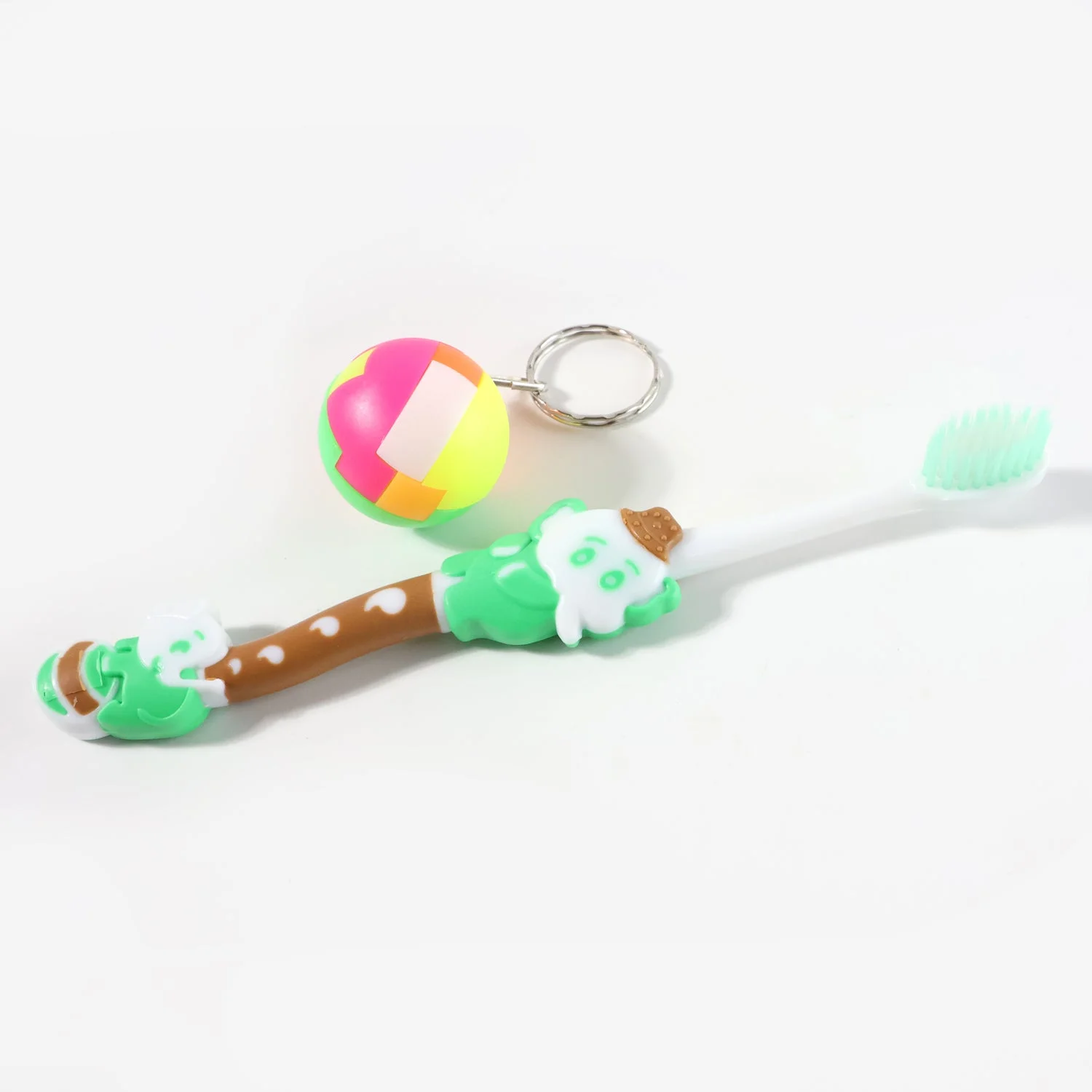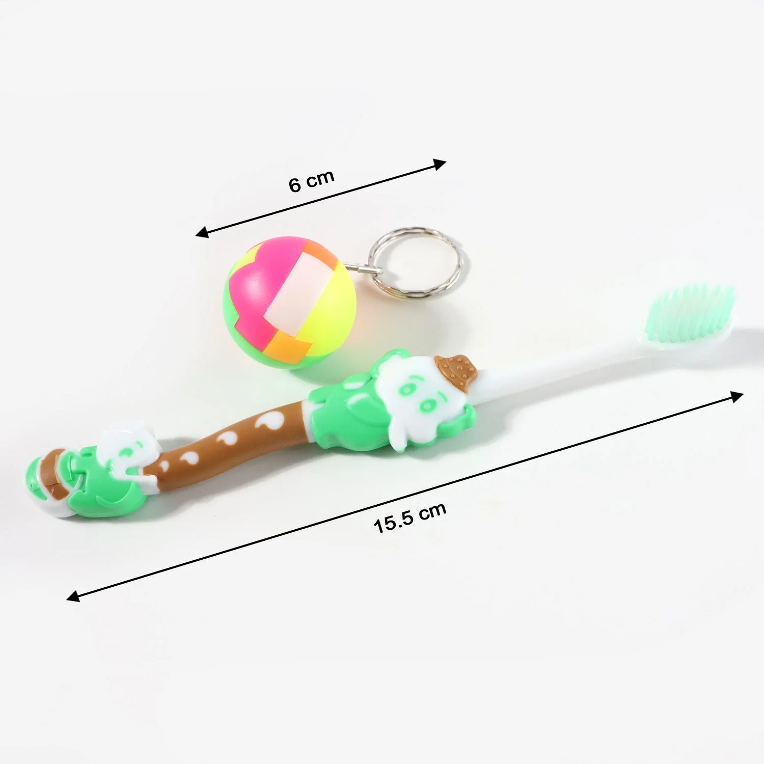 kids toothbrush and ball keychain toy set, kids toothbrush toy set, toothbrush and keychain toy combo, children oral care toy, kids dental care toy, fun toothbrush for kids, ice cream toothbrush for kids, ice cream themed toothbrush, colorful ball keychain toy, kids oral hygiene toy, children dental care set