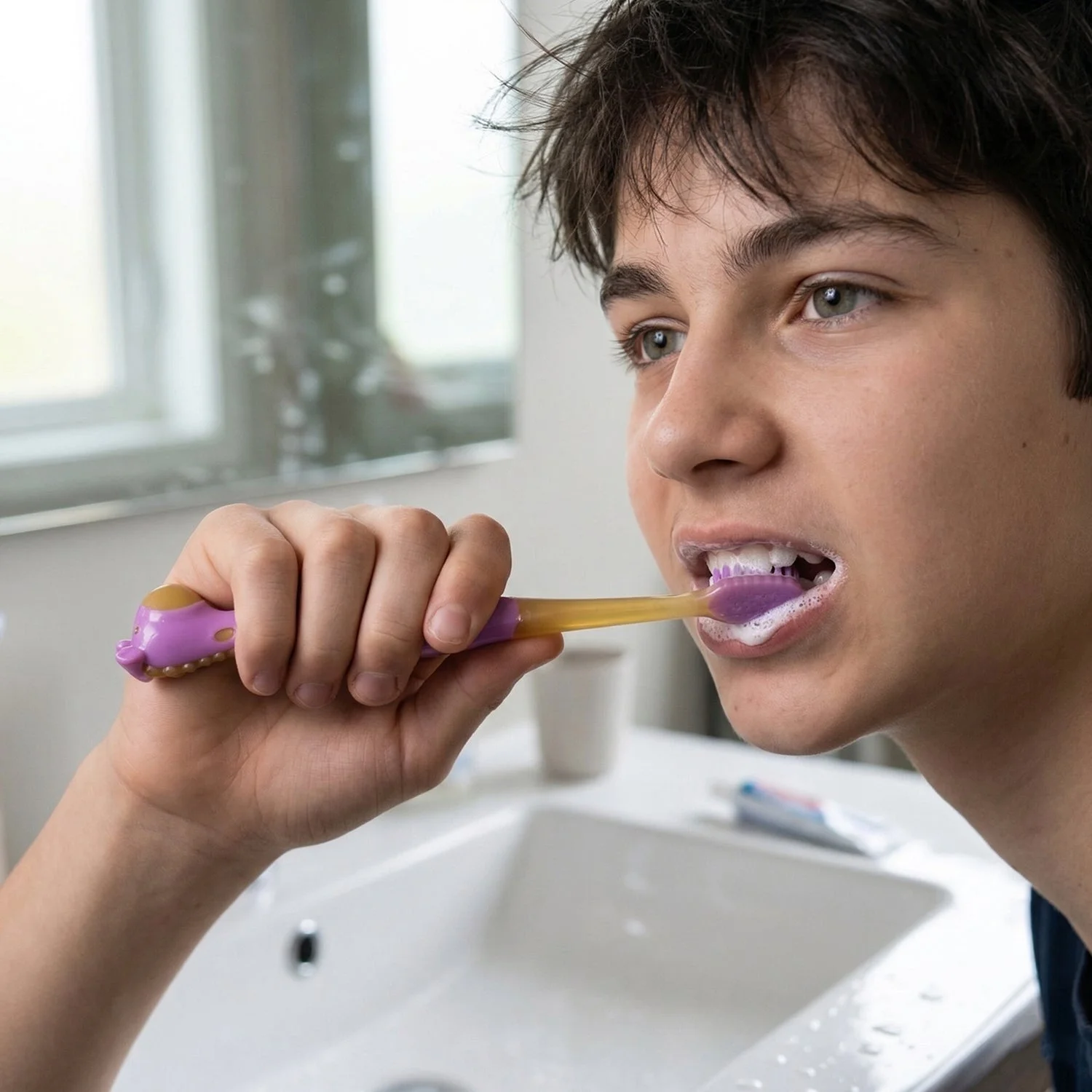 Turn brushing into an enjoyable activity with this kids toothbrush set featuring a fun whistle fan design. This cartoon kids toothbrush keeps children engaged while brushing.Designed for safety, this soft bristle toothbrush ensures gentle cleaning. A perfect toothbrush for children to encourage daily hygiene habits.