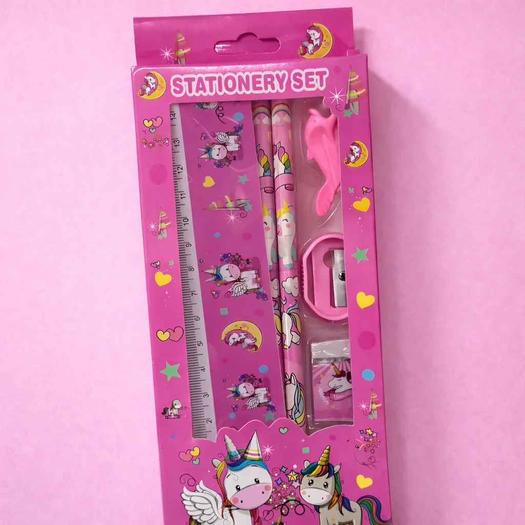 kids unicorn stationery set, unicorn stationery kit, cartoon stationery set for kids, school stationery set for kids, kids pencil ruler set, children school supplies, stationery gift set for kids, kids writing stationery kit, school supplies combo pack, return gift stationery set, kids study kit, pencil eraser sharpener set, unicorn school supplies, stationery set for students, kids learning supplies