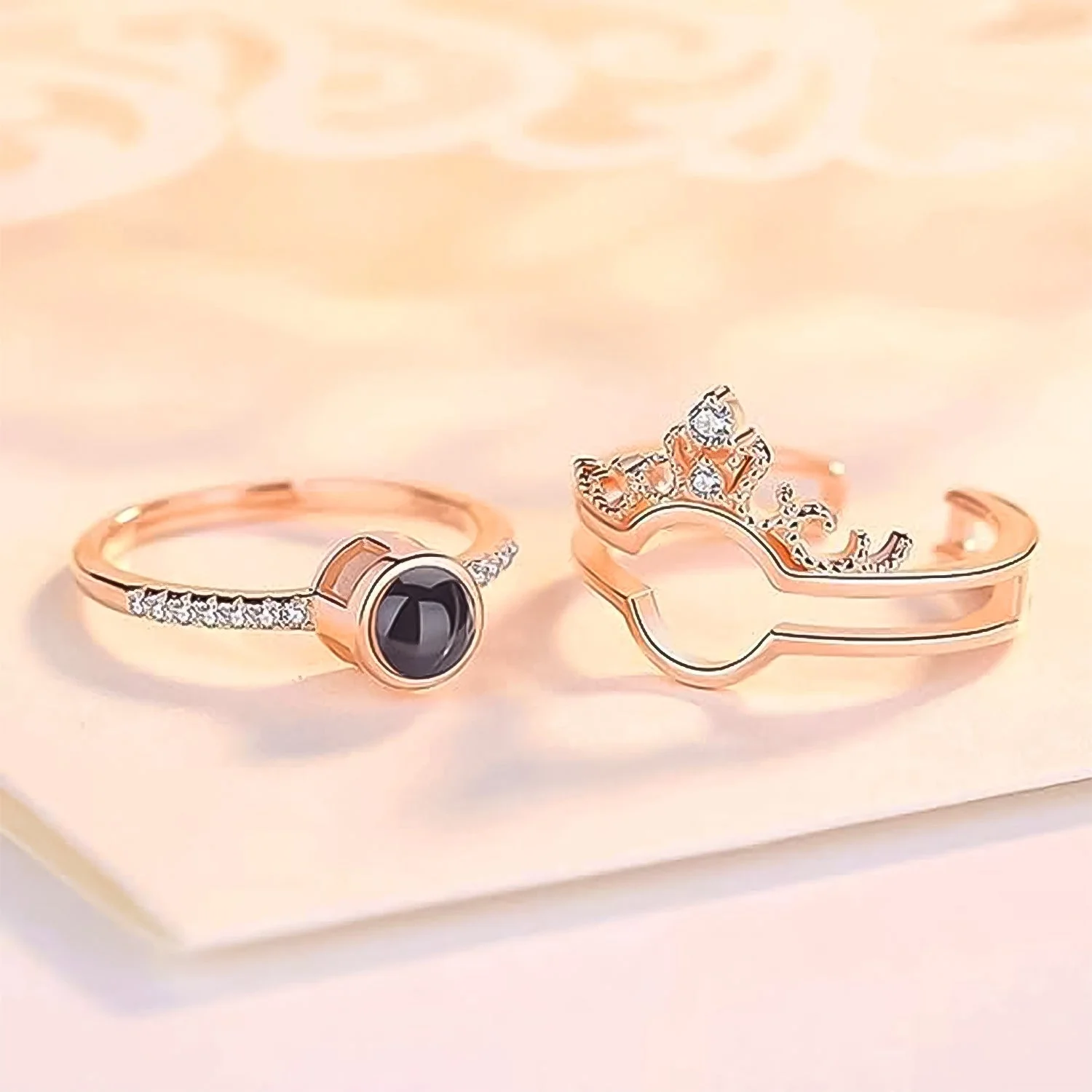 100 Languages King Crown I Love You Romantic Gift Ring Two in One Diamond Ladies Couple Jewellery,