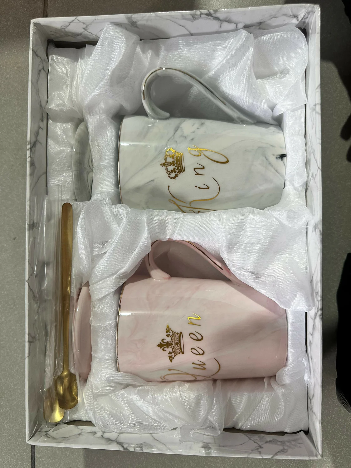 king queen mugs set, couple coffee mugs gift set, ceramic tea cups for couples, marble coffee mugs, anniversary gift for husband and wife, valentine gift mugs, wedding gift mugs set, royal design coffee mugs, luxury couple mugs, matching mugs for couples, king queen tea mugs, gift box ceramic mugs