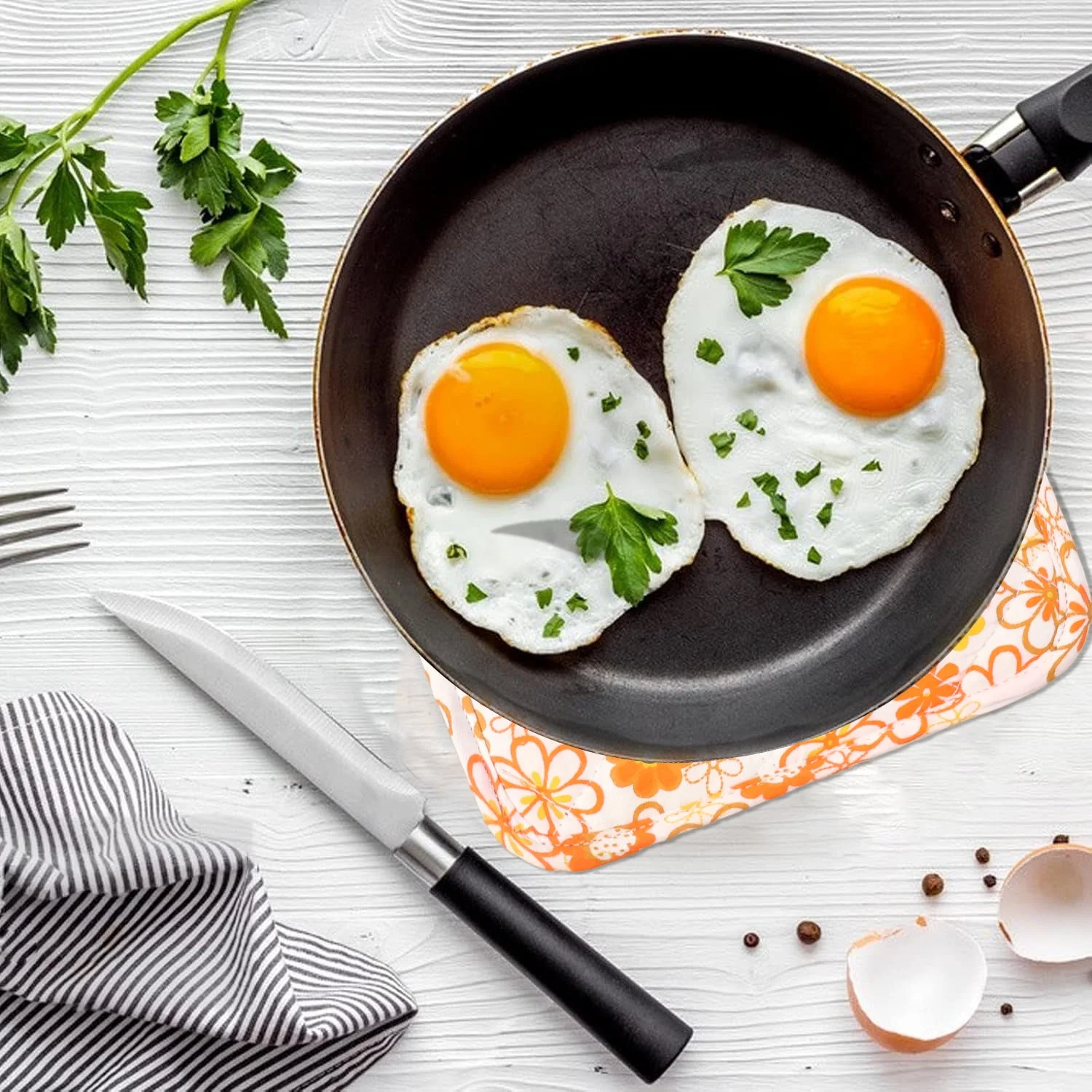 This kitchen heat resistant oven mitt pad is designed to protect your hands and countertop while handling hot cookware, serving dishes, and baking trays. The thick quilted construction provides a comfortable cushioned layer between your hand and hot surfaces, helping to reduce the transfer of heat during everyday cooking. Its square shape offers good coverage for gripping pans, lids, skillets, or baking dishes, while the stitched surface keeps the filling evenly distributed so the pad stays flat and easy to hold. The soft outer fabric feels gentle to the touch yet is sturdy enough for regular kitchen use. A convenient hanging loop in the corner allows you to keep it within easy reach near the stove, oven, or dining area, adding a touch of cheerful style with its floral printed design. This reusable pad is a simple yet essential tool that makes cooking, serving, and baking safer and more comfortable for the whole family.