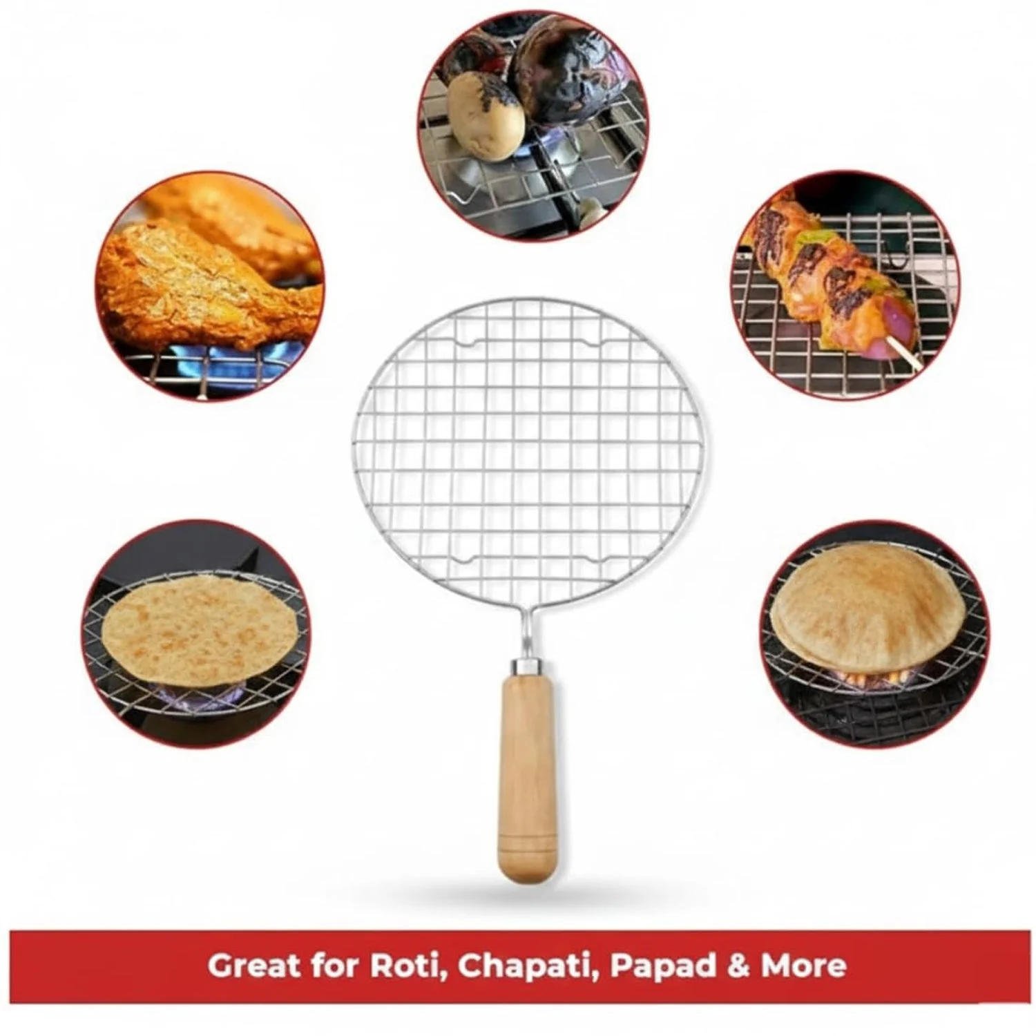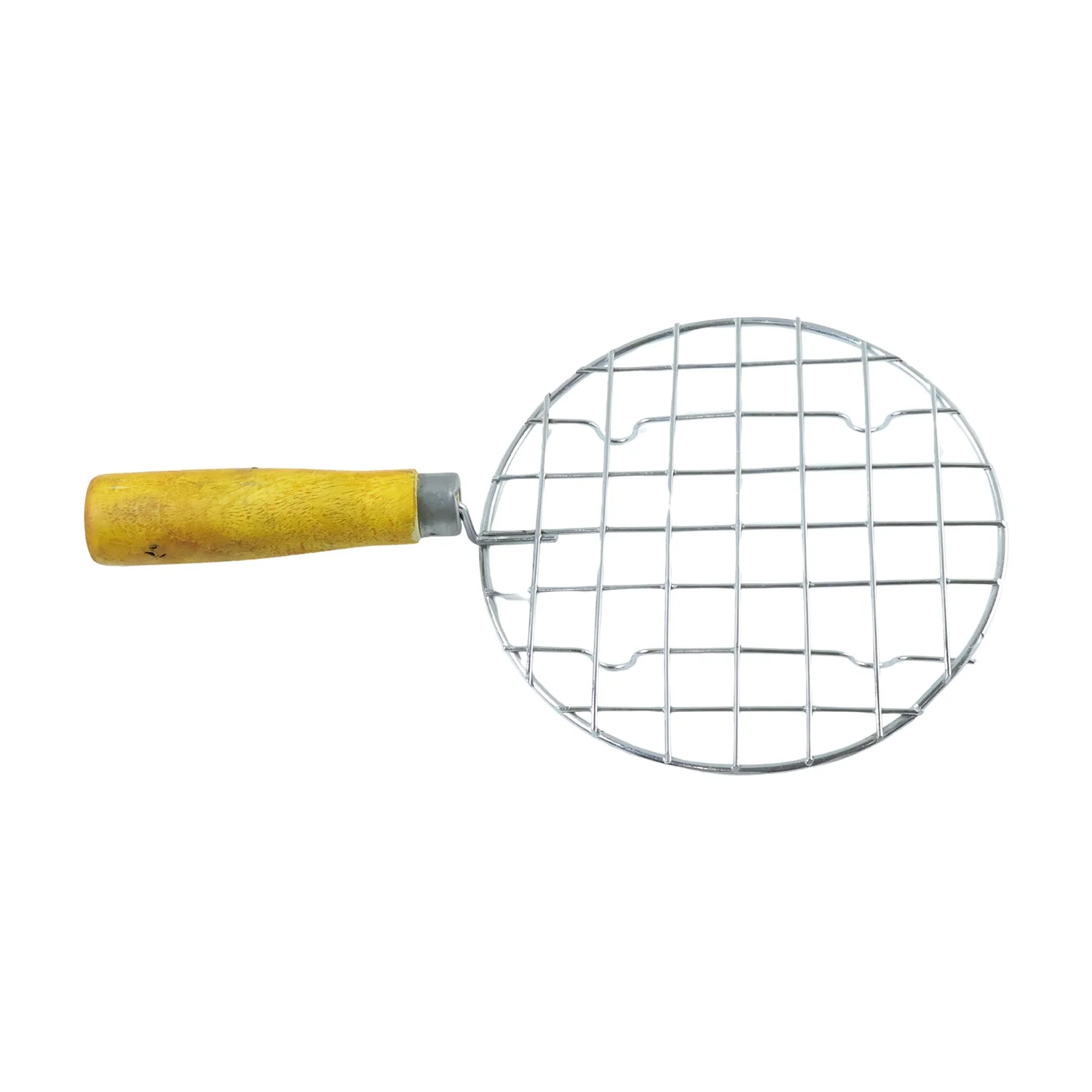 Kitchen Round Stainless Steel Roaster Jali, Barbecue Grill with Wooden Handle