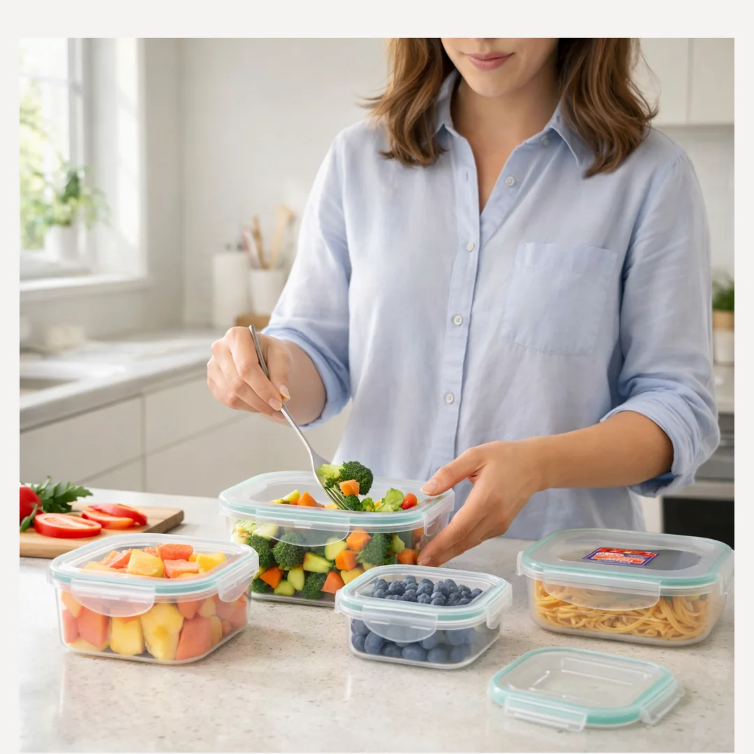 5498 Kitchen Containers Set, Fridge Storage Boxes, Plastic Containers for Kitchen Organizer, Kitchen Accessories Items for Storage Organizer, Snap-Seal (lunch box/storage organizer) (5 Pcs Set)