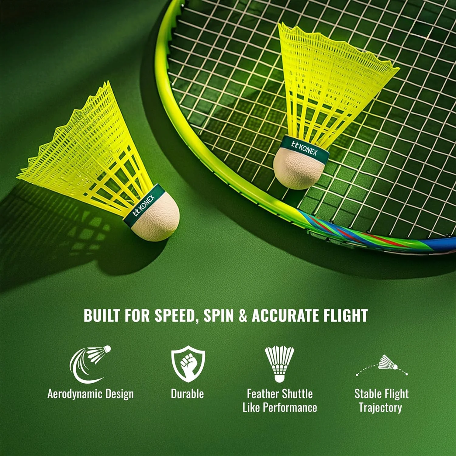 Knx Durable Plastic Shuttlecock | High-Performance Plastic Design for Indoor & Outdoor Badminton | Consistent Flight & Stability for Training & Match Play (6 Pcs Set)