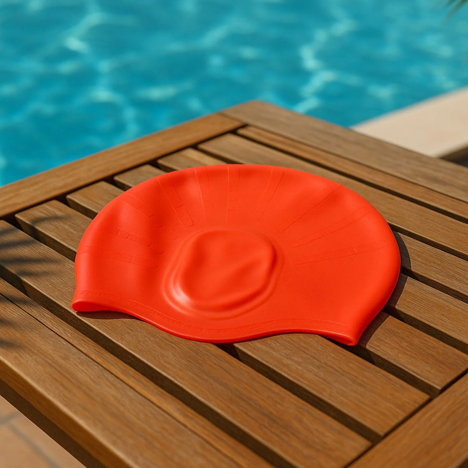 Made from high-grade silicone, it offers superior elasticity and doesn’t deform easily. The ergonomic 3D ear design provides additional space to cover ears comfortably, making it ideal for long swims or professional training. Its vibrant red color adds visibility and style.