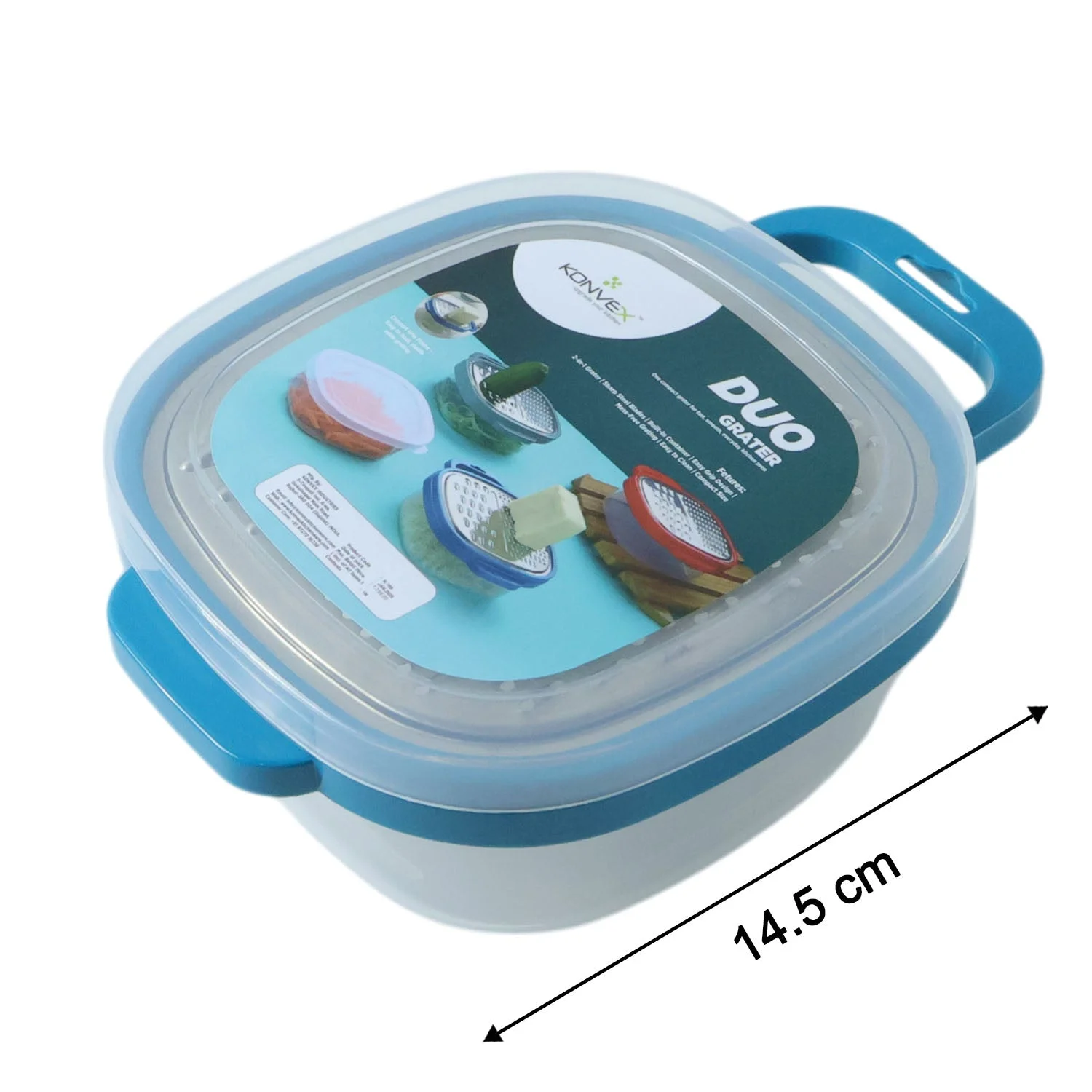 konvex duo grater, plastic kitchen grater, cheese and vegetable grater, grater with container, grater with lid, multipurpose kitchen slicer, food shredder for carrot, cucumber grater, cheese grater with storage box, vegetable slicer and grater, kitchen prep grater, compact food grater, manual grater for cheese, carrot and cucumber shredder, plastic grater for home use, storage container grater combo, grater for food preparation, versatile kitchen grater, easy use grater with box, kitchen tool for shredding