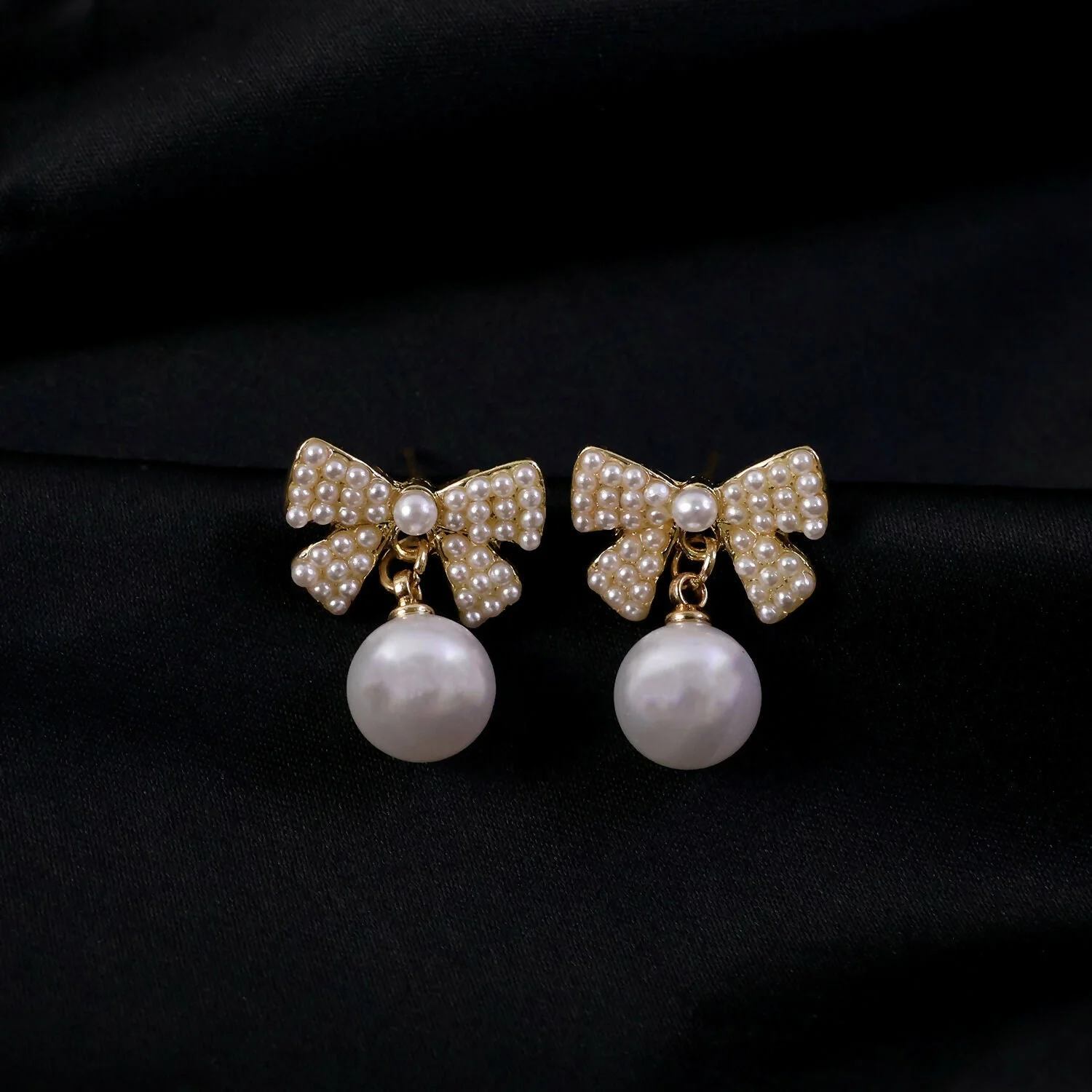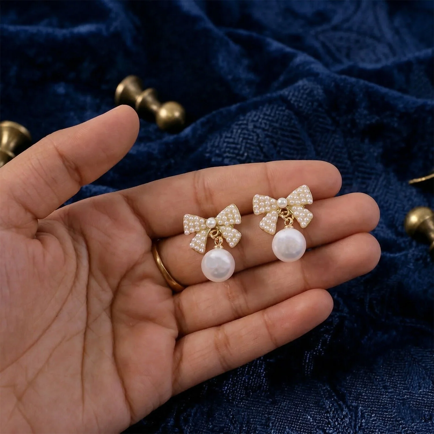 Be the first to review Korean Crystal Ribbon Bow & Drop Pearl Studs For Girls And Women!