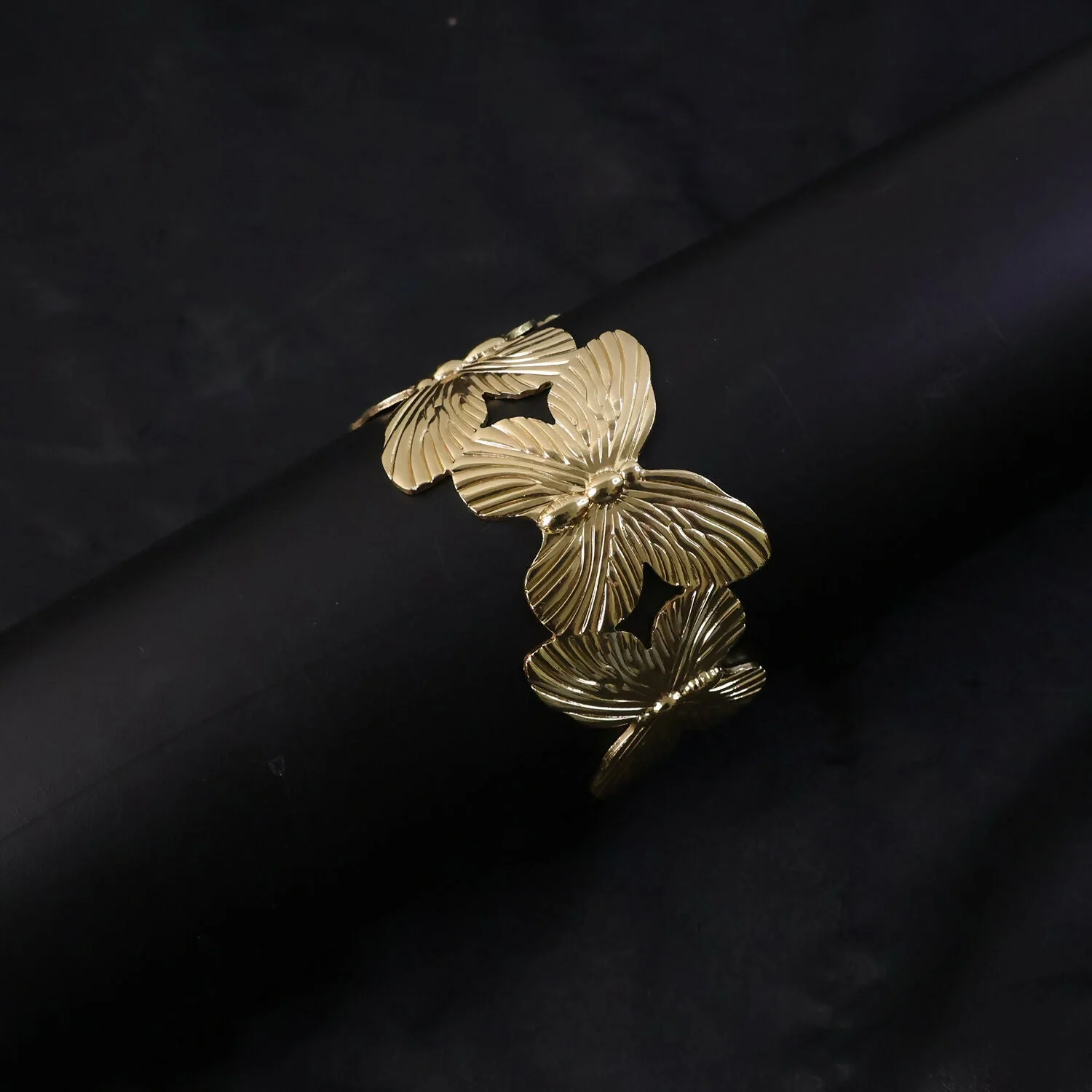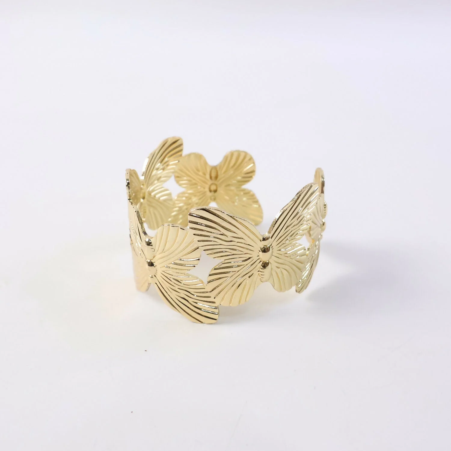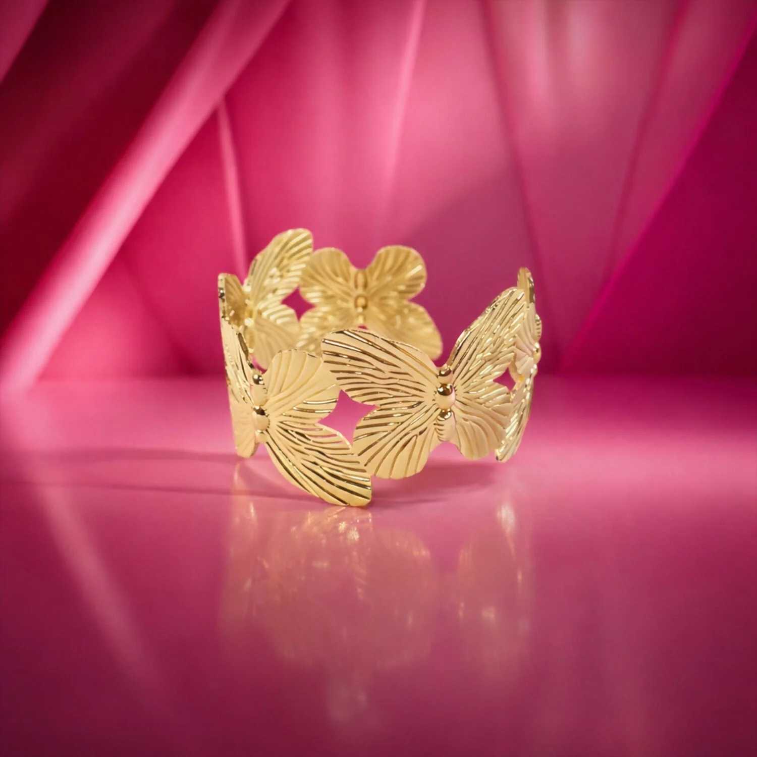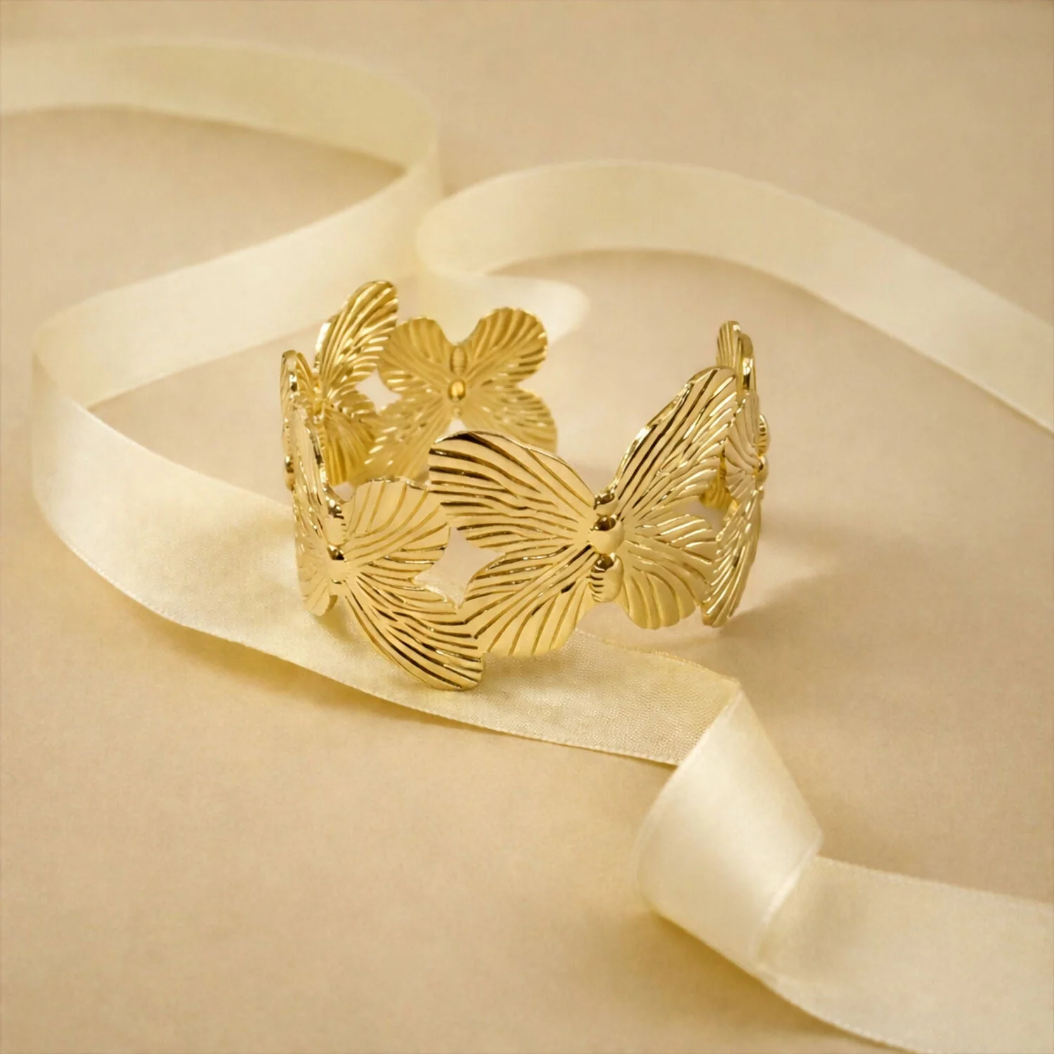 This elegant floral design bracelet features a bold and artistic pattern that adds a graceful charm to your overall look. Crafted in a beautiful golden finish, the bracelet is designed with detailed flower motifs connected seamlessly to create a stylish statement piece. The intricate petal detailing gives it a luxurious and premium appearance while maintaining a sophisticated and feminine touch. Perfect for festive occasions, parties, weddings, and special events, this bracelet enhances both traditional and modern outfits effortlessly. A stunning accessory choice that adds confidence, elegance, and timeless beauty to your jewellery collection.