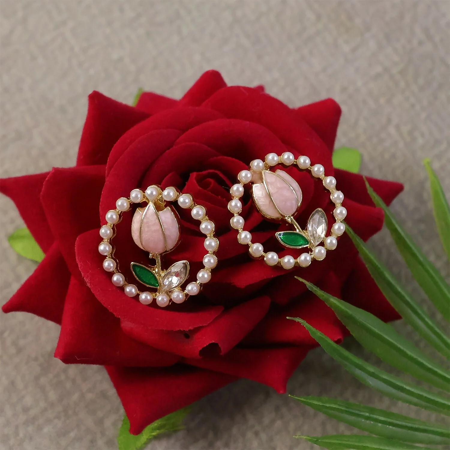 Enhance your everyday style with these elegant Korean Style Floral Pearl Earrings, designed to give a soft, feminine, and premium look. Featuring a beautiful rose flower design surrounded by delicate pearls, these earrings are inspired by the latest Korean fashion trends.