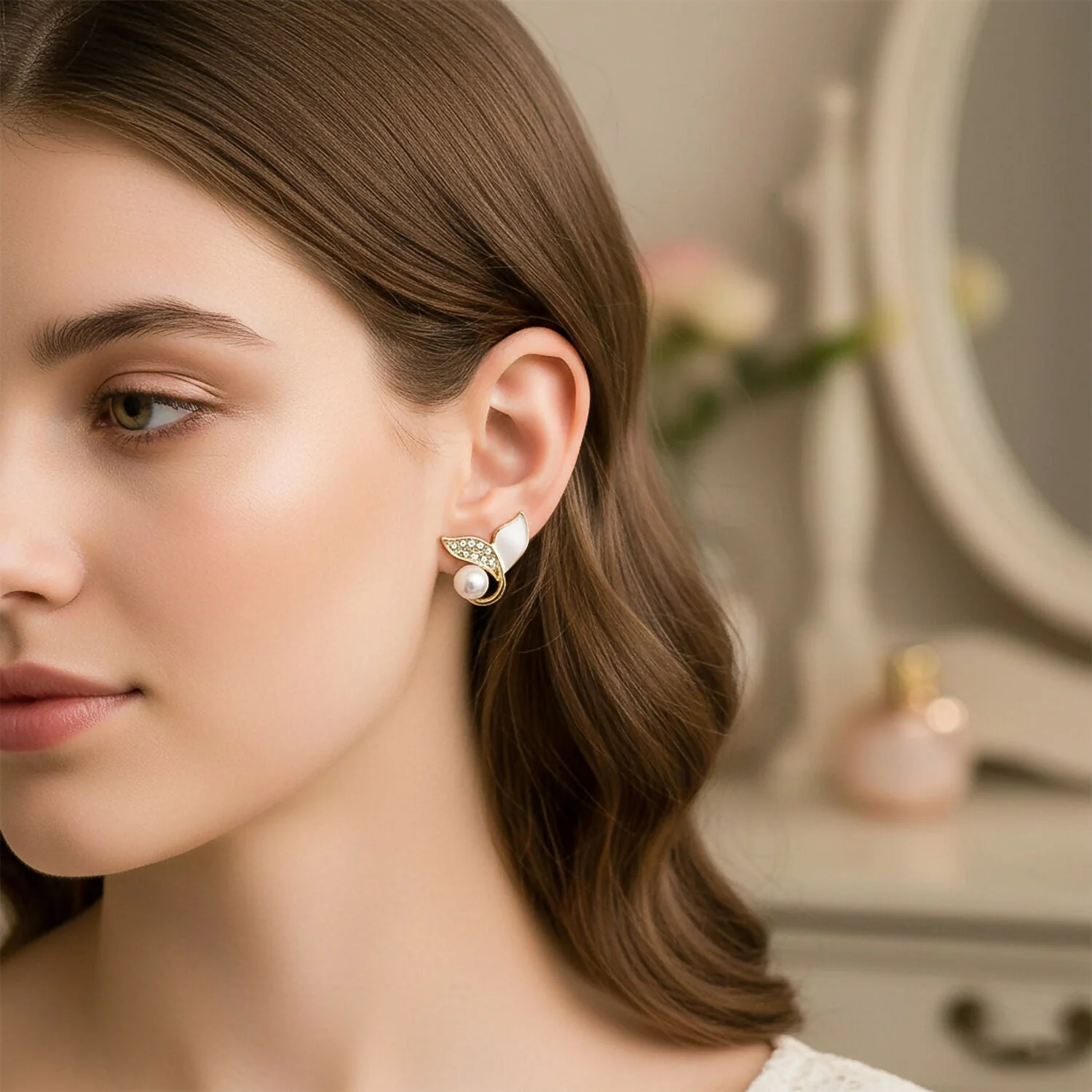 Be the first to review Korean Style Pearl Leaf Stud Earrings for Women & Girls | Elegant Gold Plated Designer Fashion Jewellery!