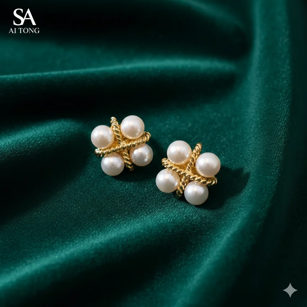 Be the first to review Korean Vintage Twisted Gold & Quad Pearl Studs For Girls And Women!