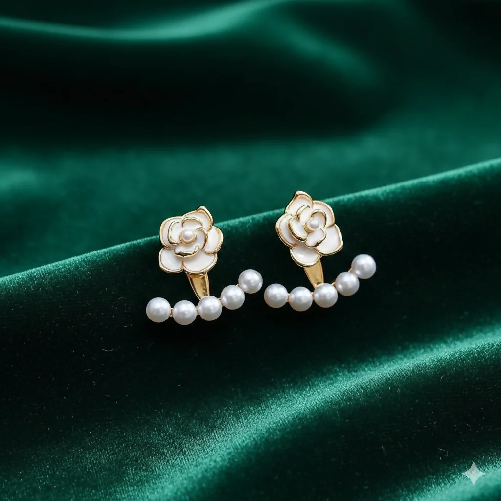 Style Tip: You can wear the rose studs alone for a minimalist look, or add the pearl jacket for a full-glam statement. Best paired with soft, flowy fabrics like chiffon or silk.
