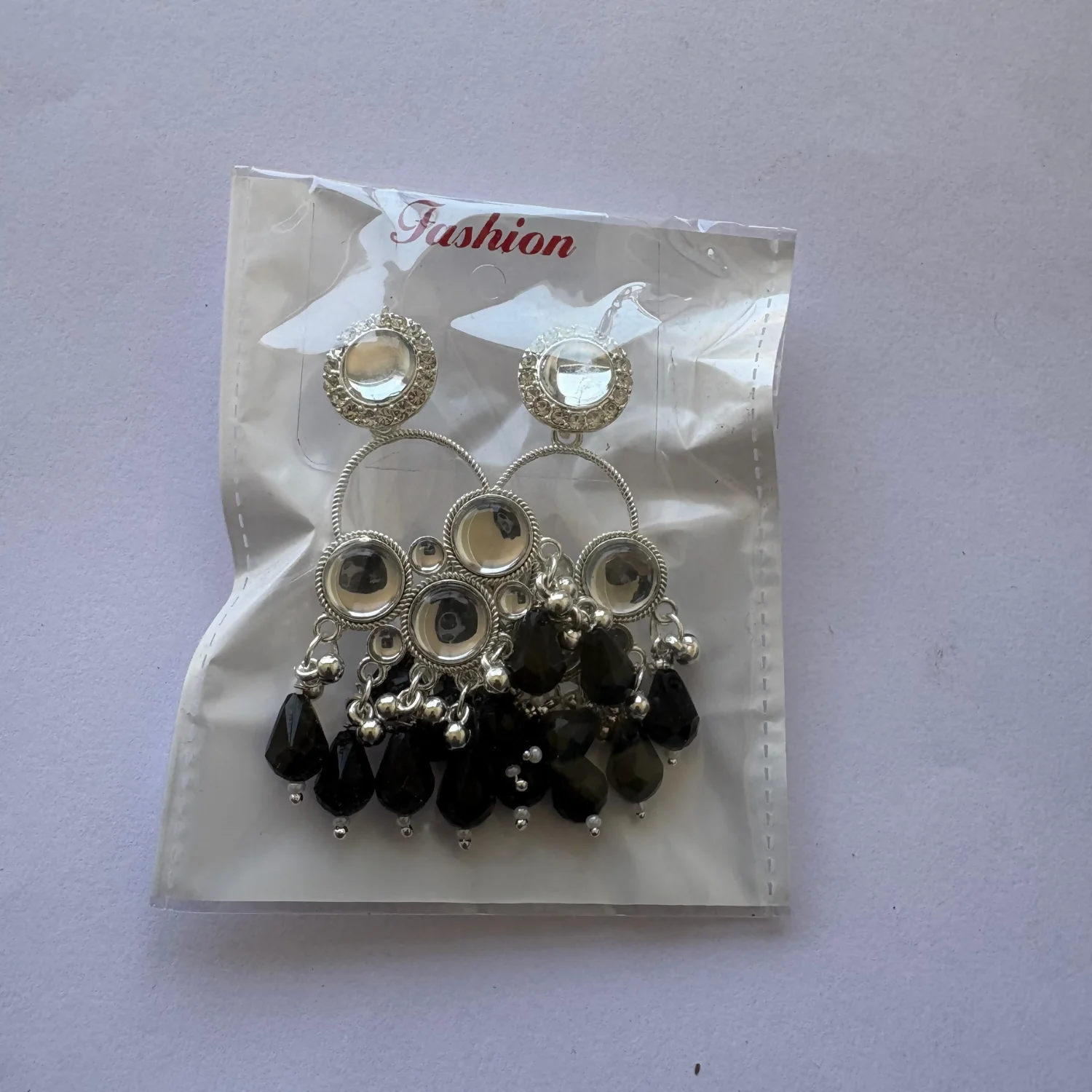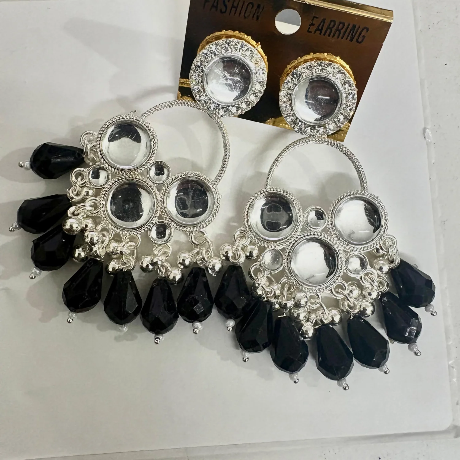Statement Drops: The base is finished with faceted black teardrop beads and tiny white pearl-like accents, creating a bold "jhumka" inspired silhouette.