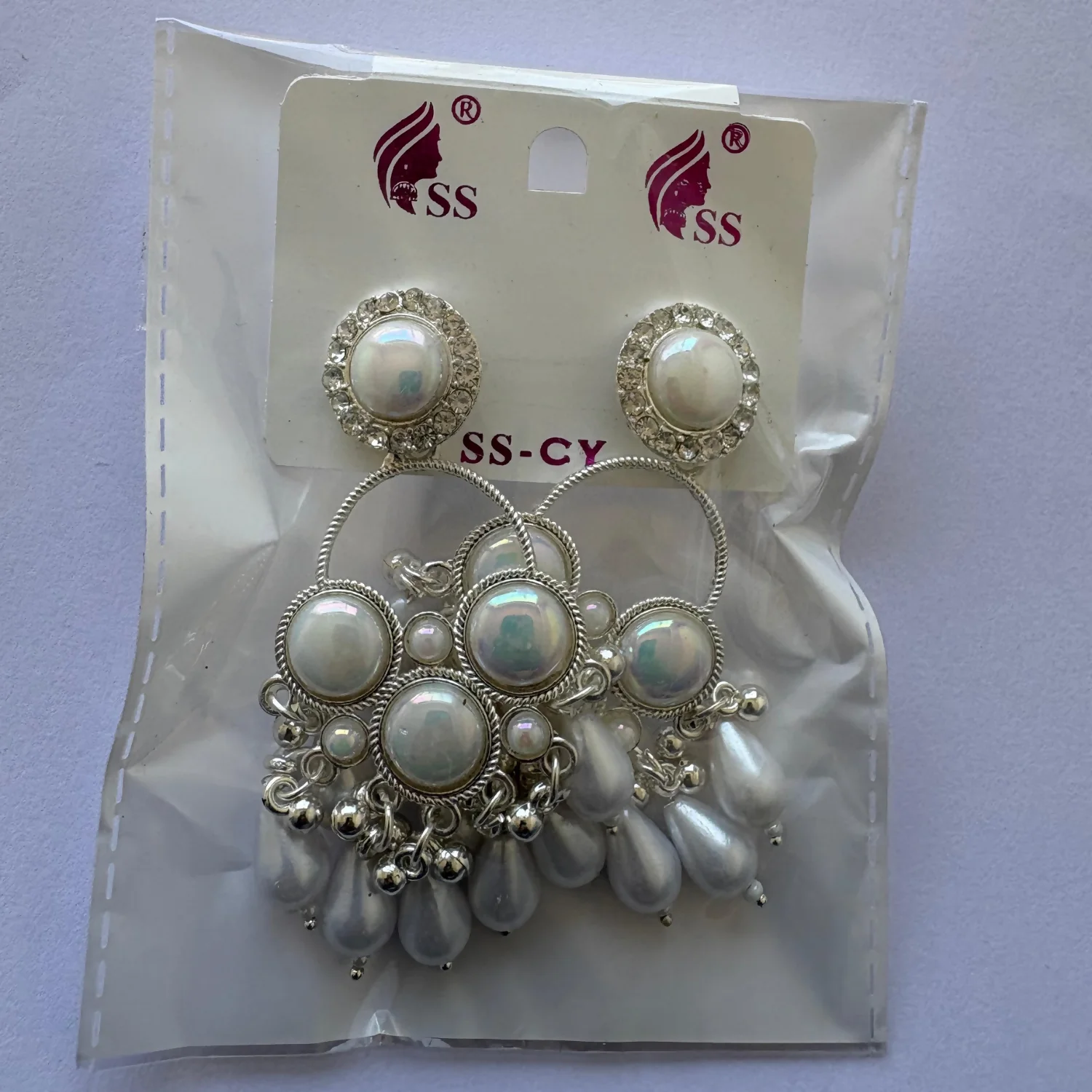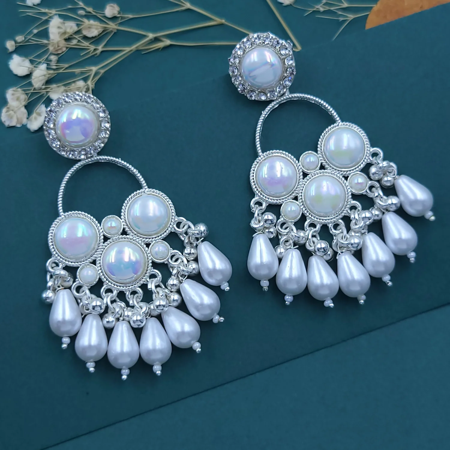 Be the first to review Kundan White Pearl Silver Plated Chandbali Earrings Agate Alloy Chandbali Earring!