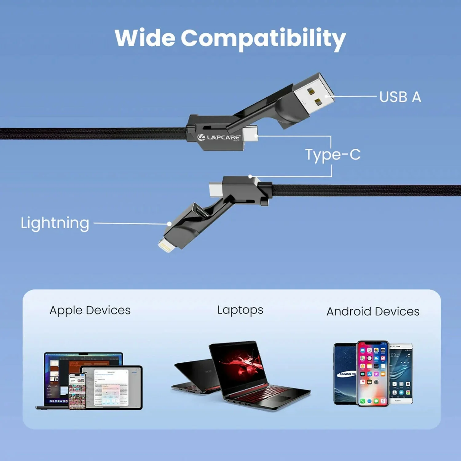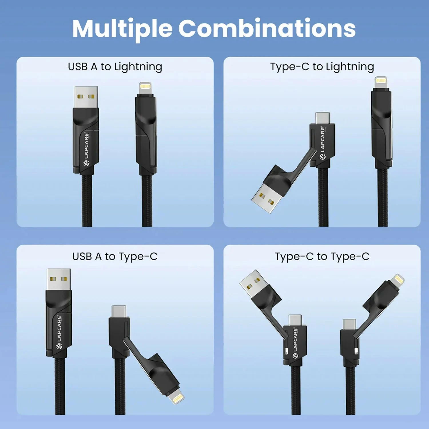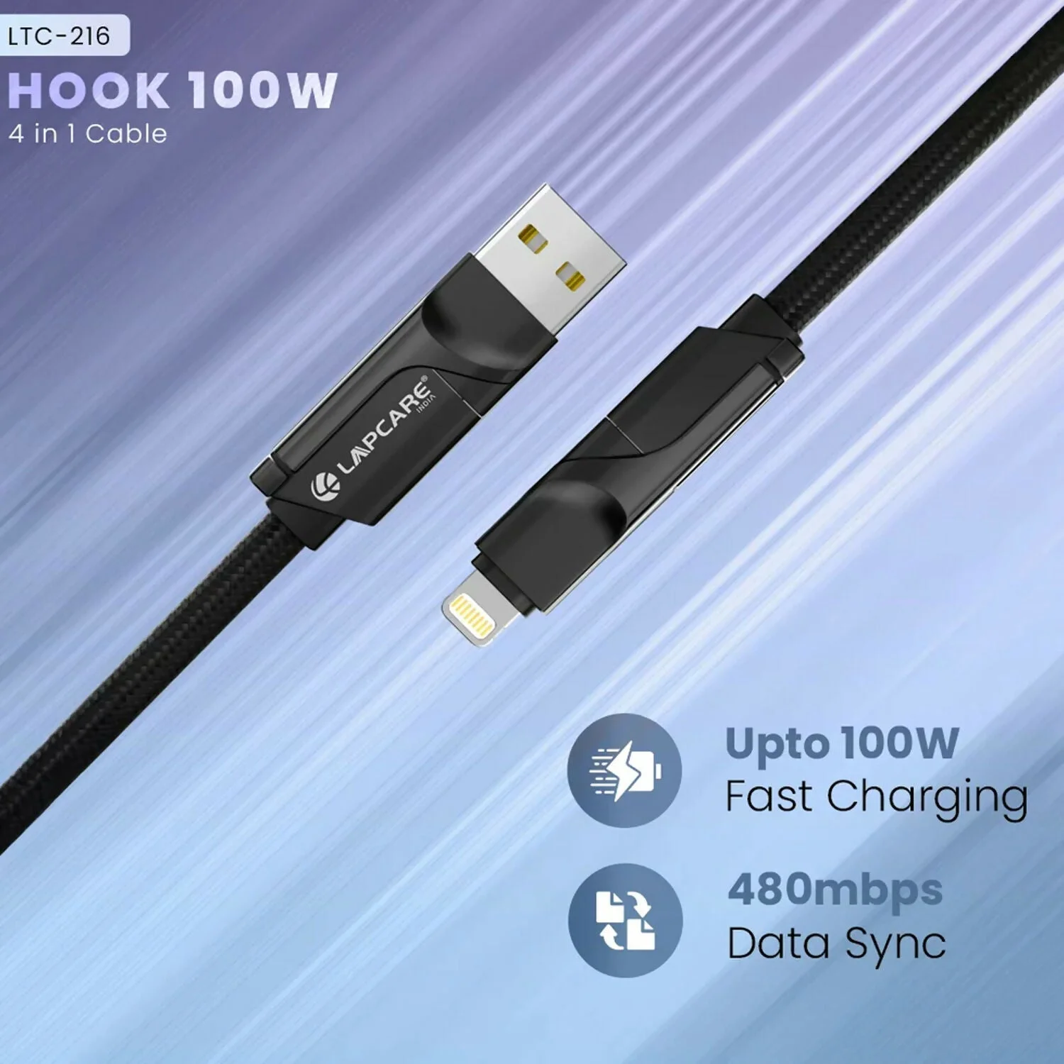 Be the first to review Lapcare Hook 4 in 1 Braided Charging Cable with USB A, Type C & Lightning!
