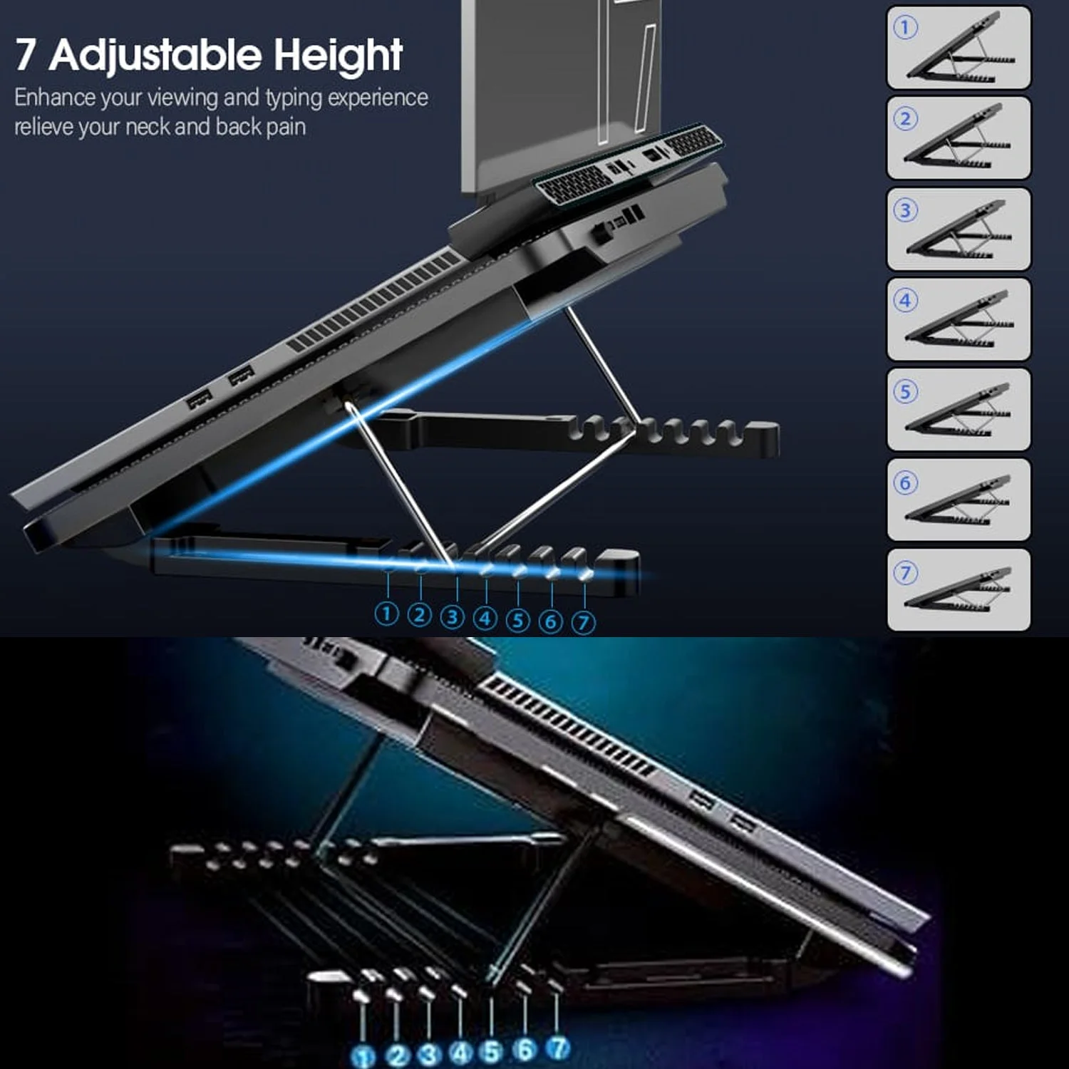 Laptop Cooler Cooling Pad with 2 Quiet Led Fans, Dual USB Ports, Portable Ultra Slim USB Powered 7 Heights Adjustable Laptop Stand for Gaming Laptop