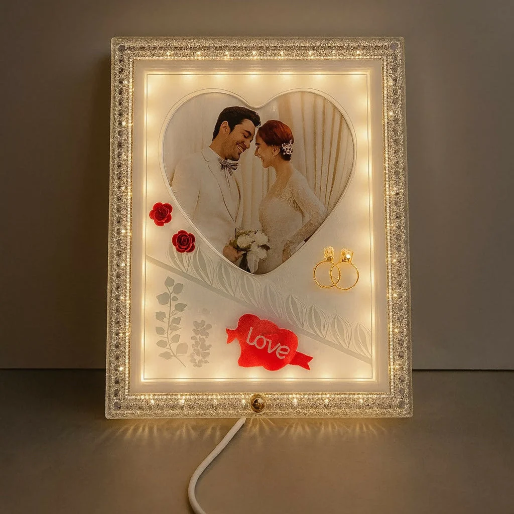 large LED photo frame, wedding couple gift lamp, big size romantic photo frame, anniversary night light, love LED photo frame large, personalized couple photo lamp, Valentine’s Day LED gift, glowing large photo frame, heart shape wedding photo lamp, big LED decorative frame for bedroom, large love lamp for couples, romantic large LED frame.