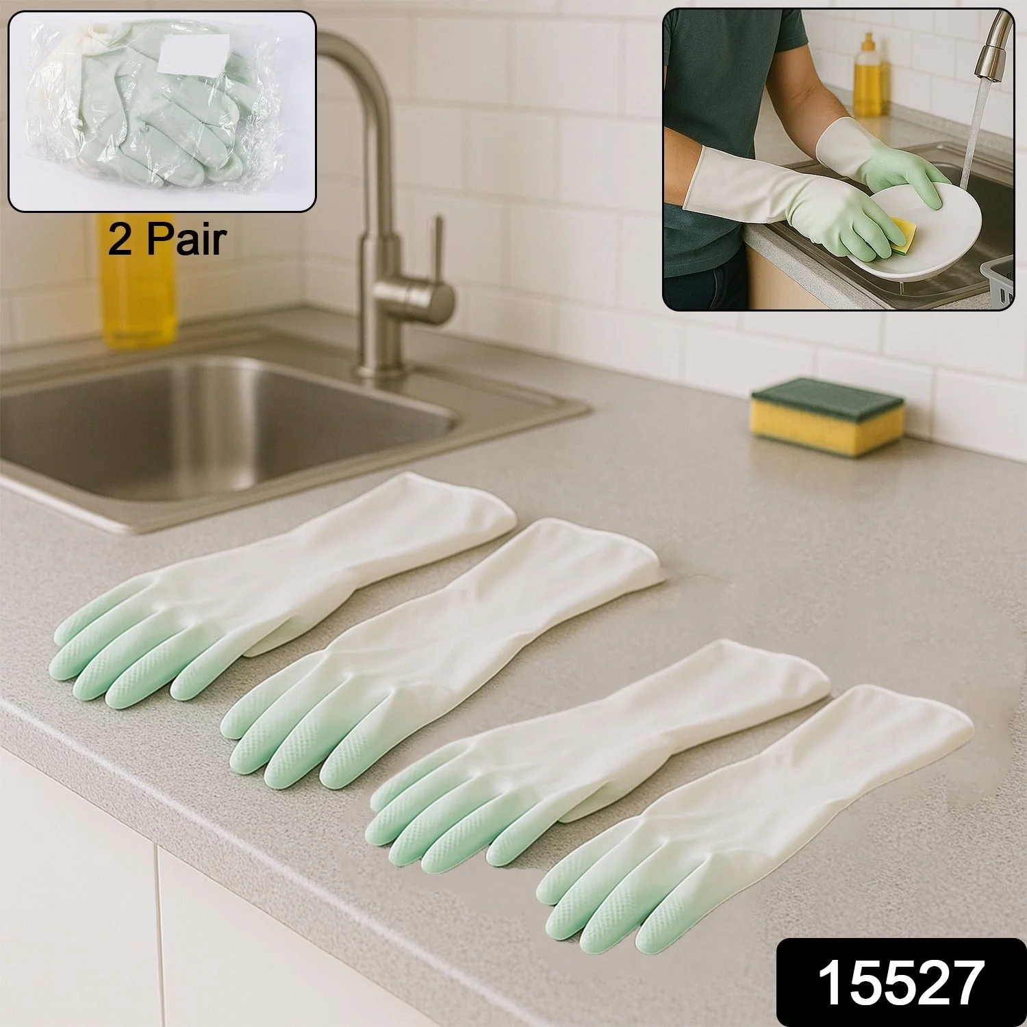 Premium Latex Household Gloves – 2 Pair Reusable Waterproof Cleaning Gloves for Dishwashing, Laundry & Household Tasks – Anti-Slip Grip & Elbow-Length Protection
