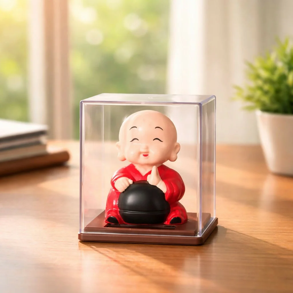 Add joy and positivity to your space with this adorable Laughing Buddha idol, designed with a cheerful expression and kept inside a clear protective display box. The smiling face and playful pose symbolize happiness, prosperity, and good luck, making it a perfect decor accent for everyday spaces.