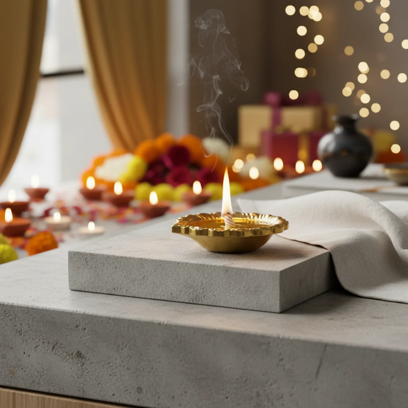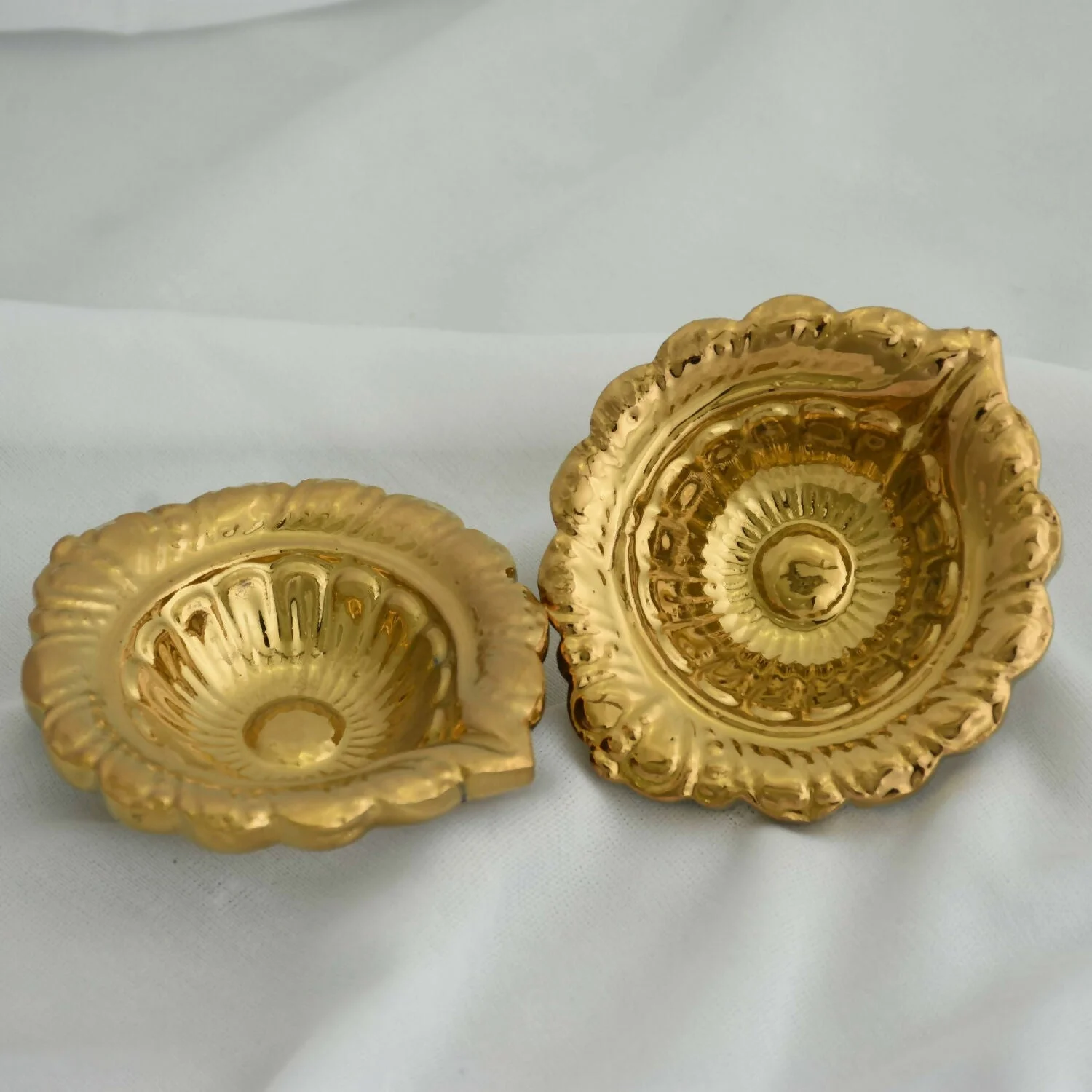 Perfect for festivals, puja ceremonies, and home decoration, this diya enhances the spiritual ambiance of any space. The durable ceramic base combined with the premium gold metallic finish makes it a stylish decorative piece that complements traditional as well as contemporary décor.
