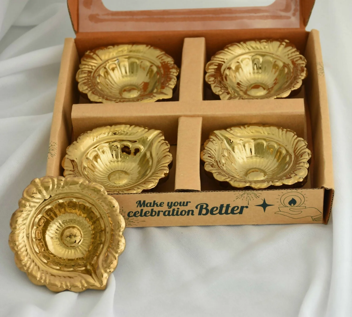 Be the first to review Leaf Design Decorative Ceramic Diya with Gold PVD Plating & Textured Metallic Finish (4 Pc)!
