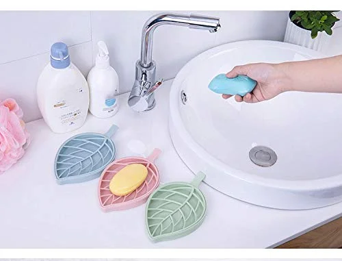 Plastic Leaf Shape Designer Soap Tray with Water Draining Tray, Sabundani (Assorted Color)