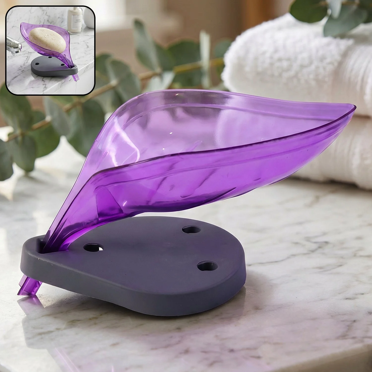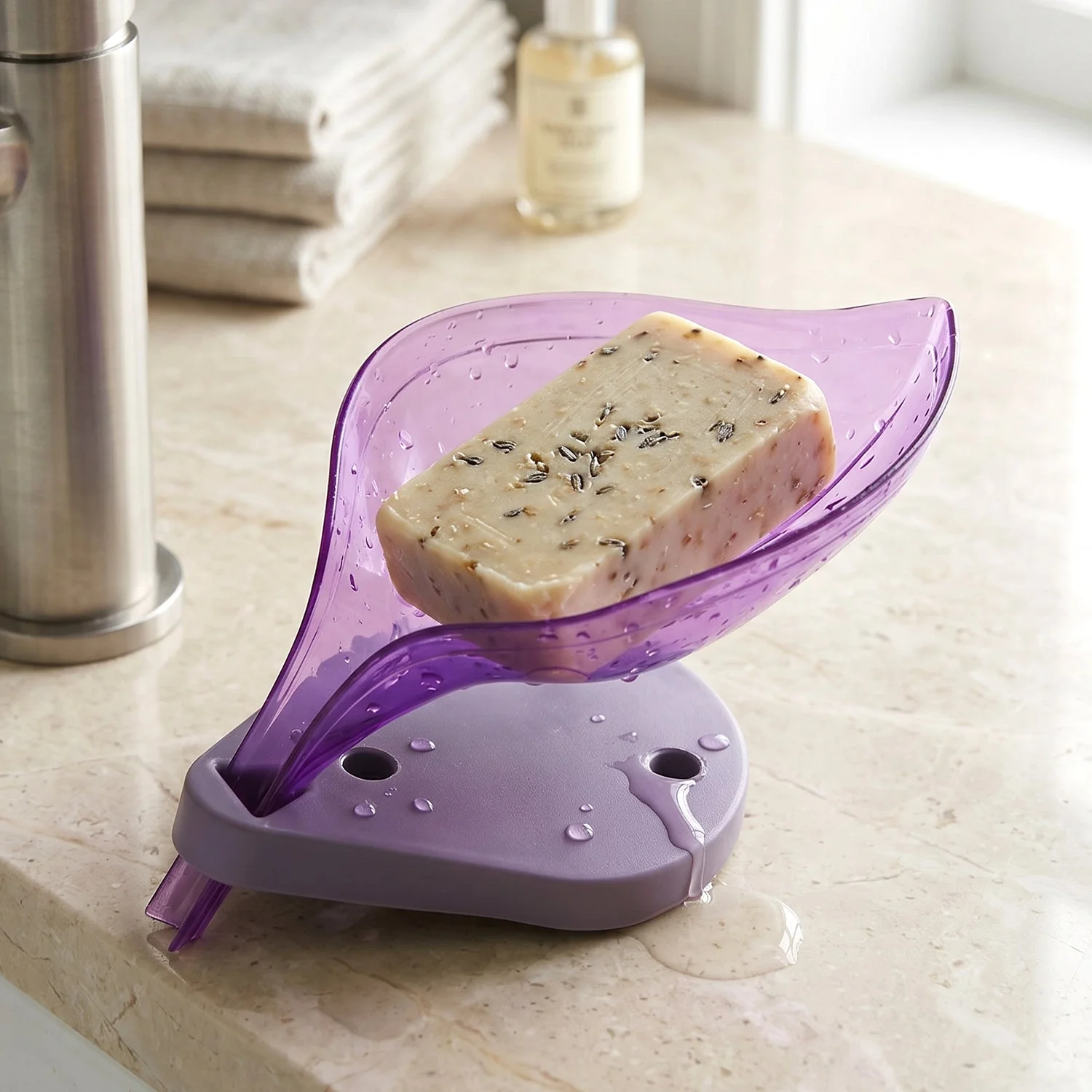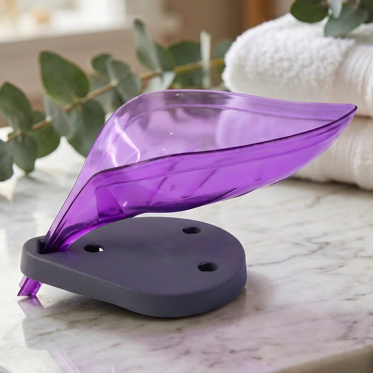 Keep your soap dry and your space clean with this stylish leaf shape soap tray holder. Designed with a smart drainage system, it allows excess water to flow away, preventing soap from becoming soggy and extending its life. The elegant leaf design adds a decorative touch to your bathroom or kitchen while maintaining functionality. Its stable base ensures it stays in place, making it a practical and attractive addition to any sink area.