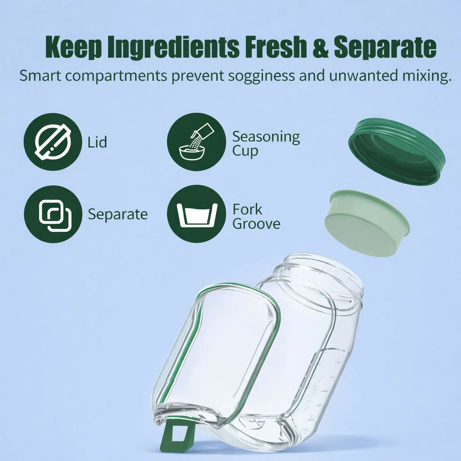 Separate Food Compartments: Keeps salad ingredients fresh and unmixed