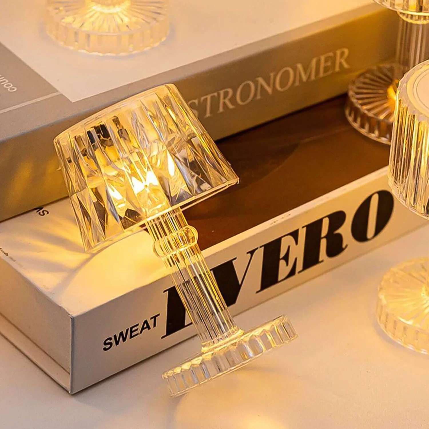 - LED Table Lamp Portable Crystal White Glass Plastic Lamps with Golden Bulb Light for Bedroom, Living Room, Restaurant, Outdoor, Office, Lamp, Show-piece Festival New Year Diwali Gift Decoration Home Decor Party