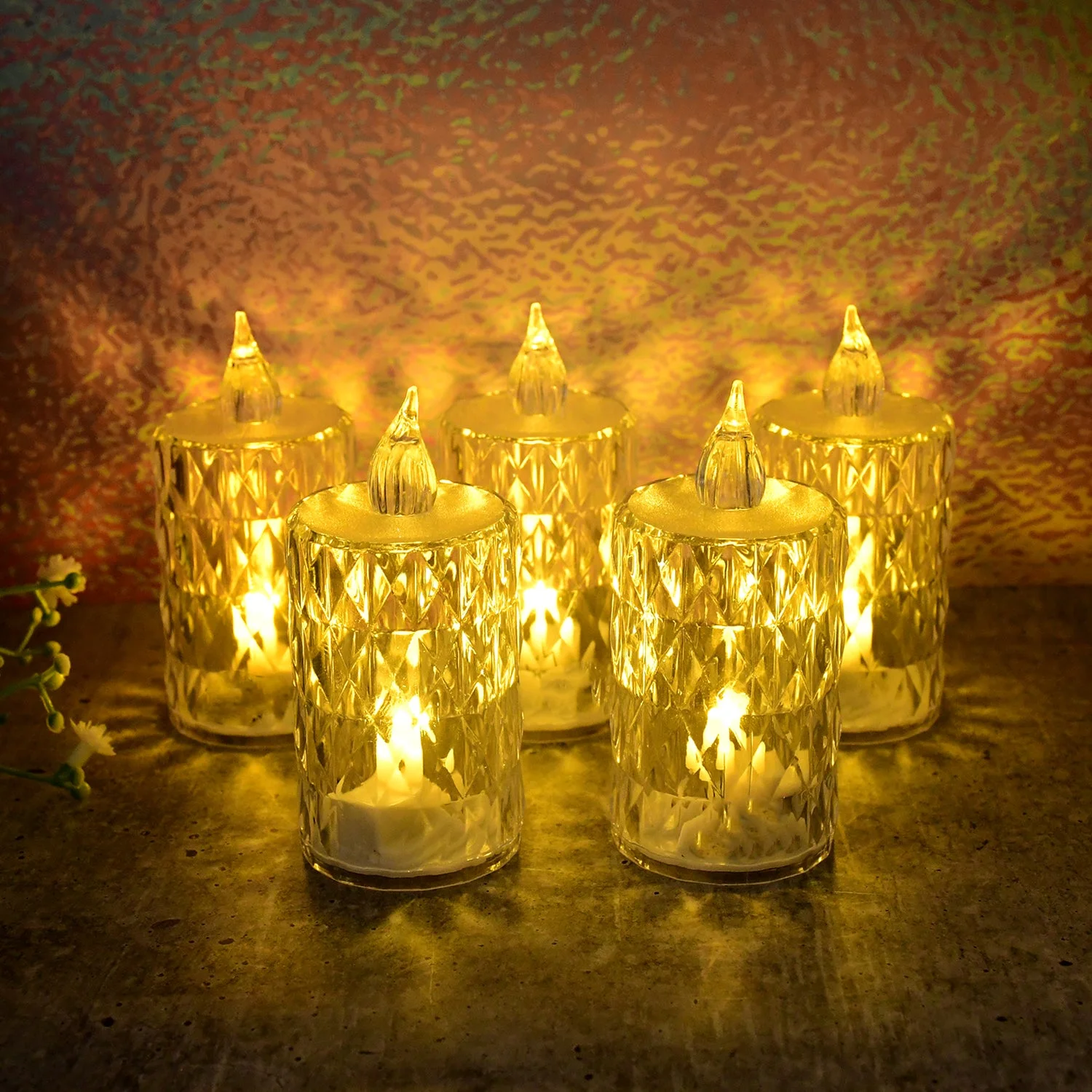 5 Piece LED Crystal Effect Flameless Candle Light Set – Decorative Electronic Candles for Festivals, Weddings, Parties & Home Decoration, Diwali Item