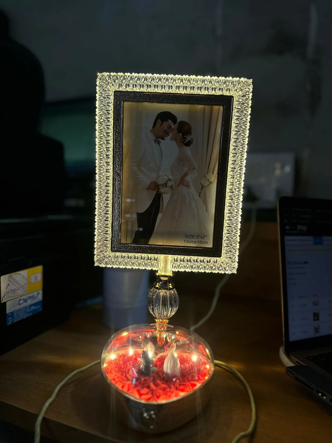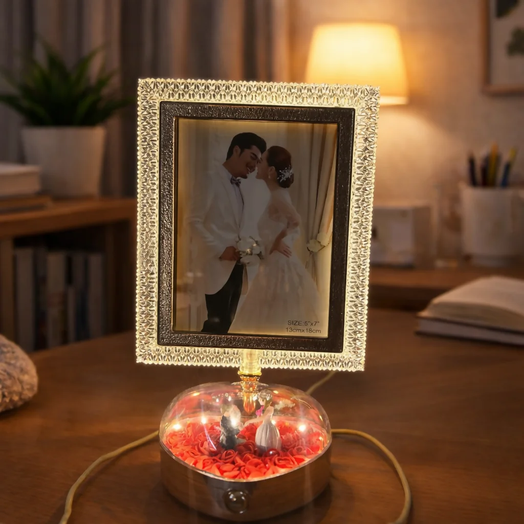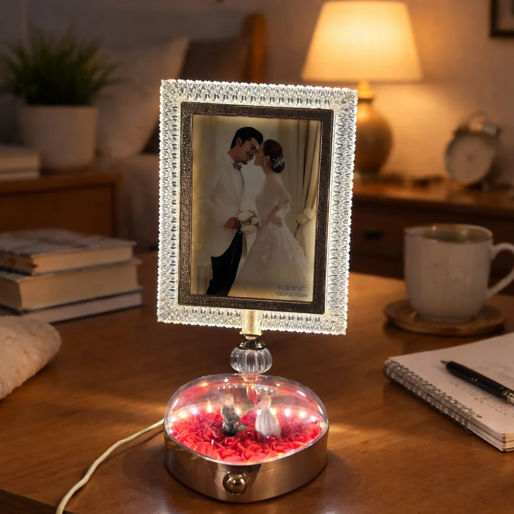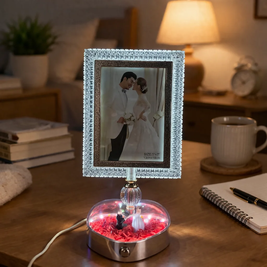 led photo frame lamp, crystal photo frame, couple gift item, romantic night lamp, anniversary gift, wedding gift decor, bedroom table decor, led picture frame, decorative lamp gift, photo display lamp, love gift item, home decor light