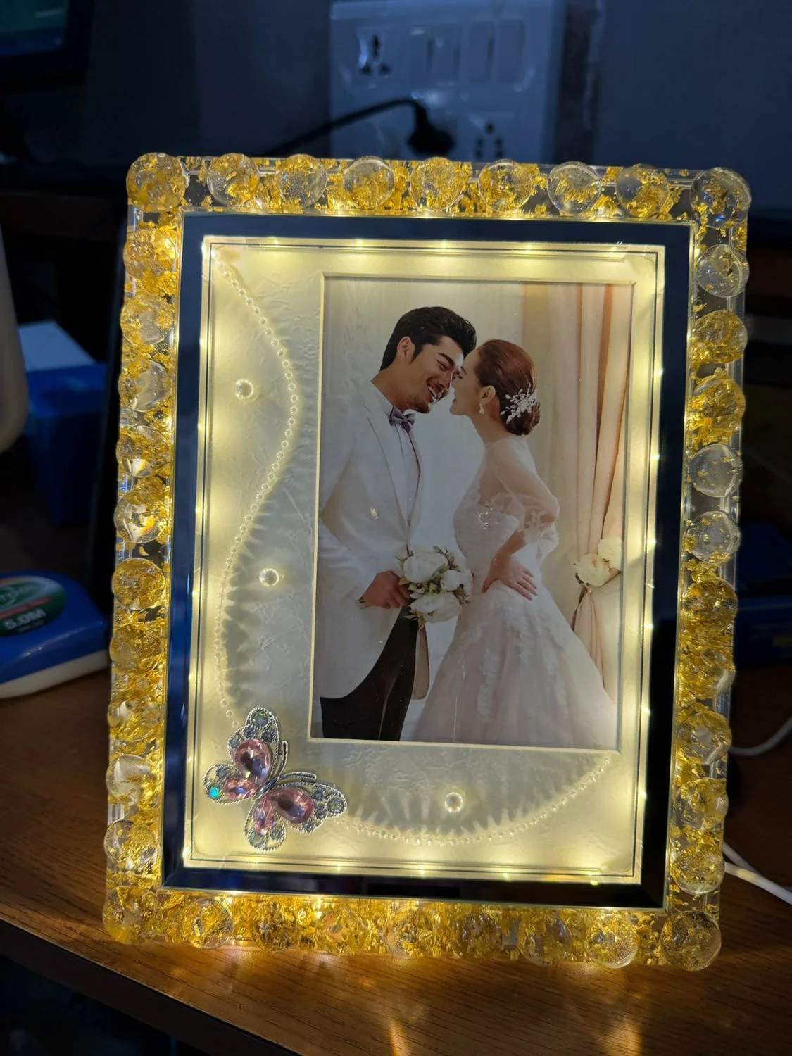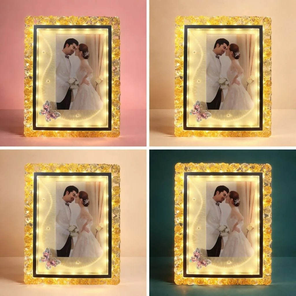 led photo frame, crystal photo frame, light photo frame, decorative frame, glowing frame, home decor frame, table frame, gift photo frame, romantic gift, memory frame, bedroom decor, led decor frame